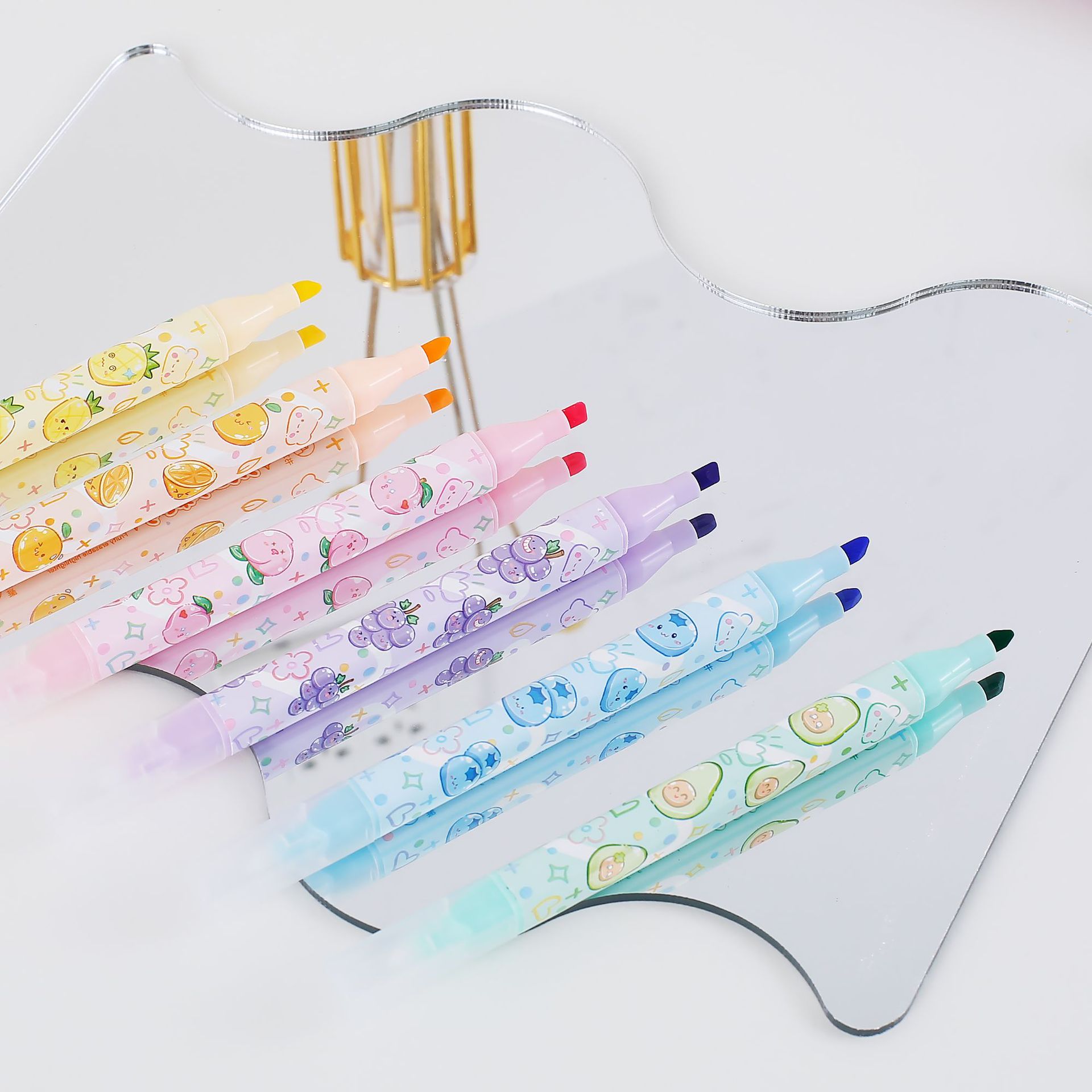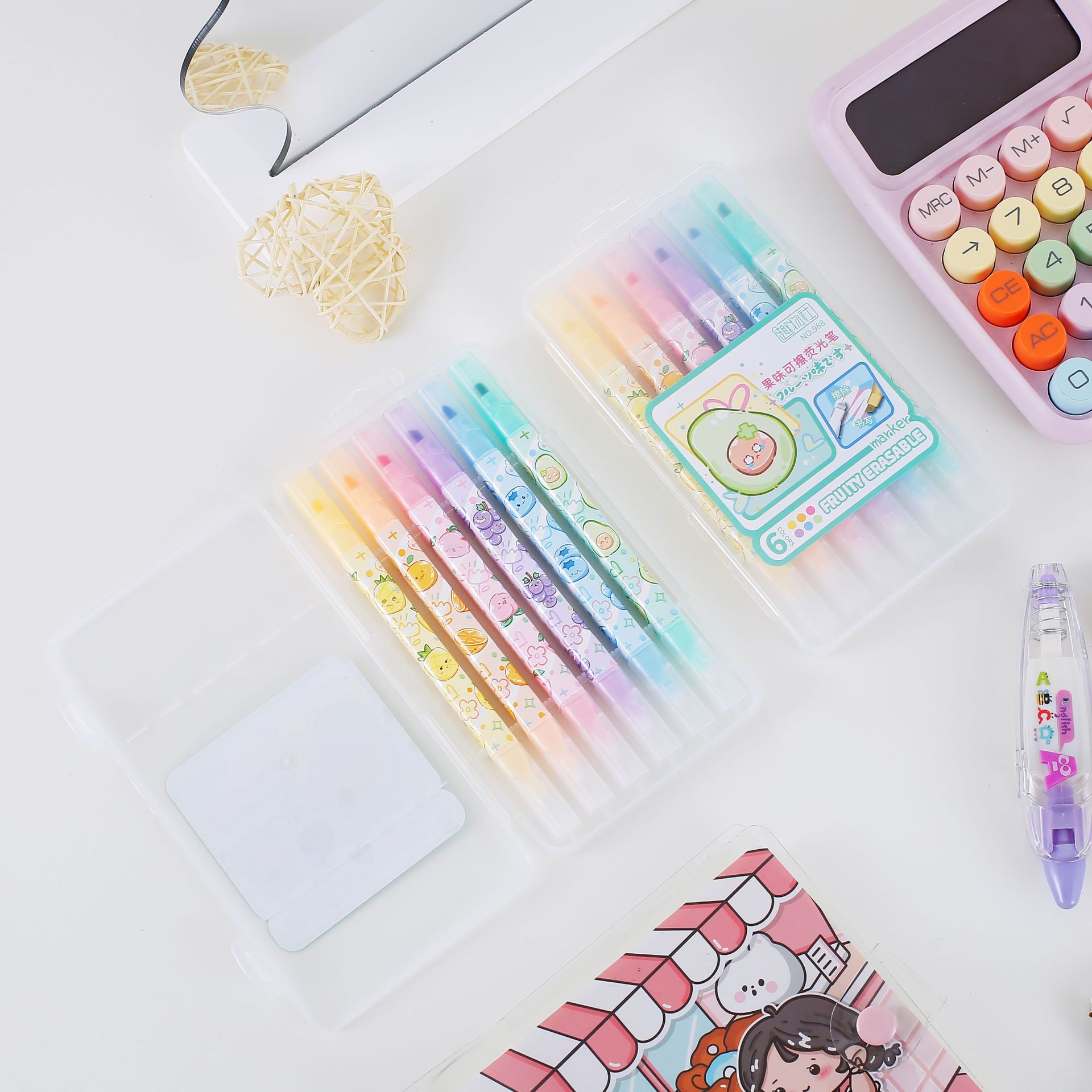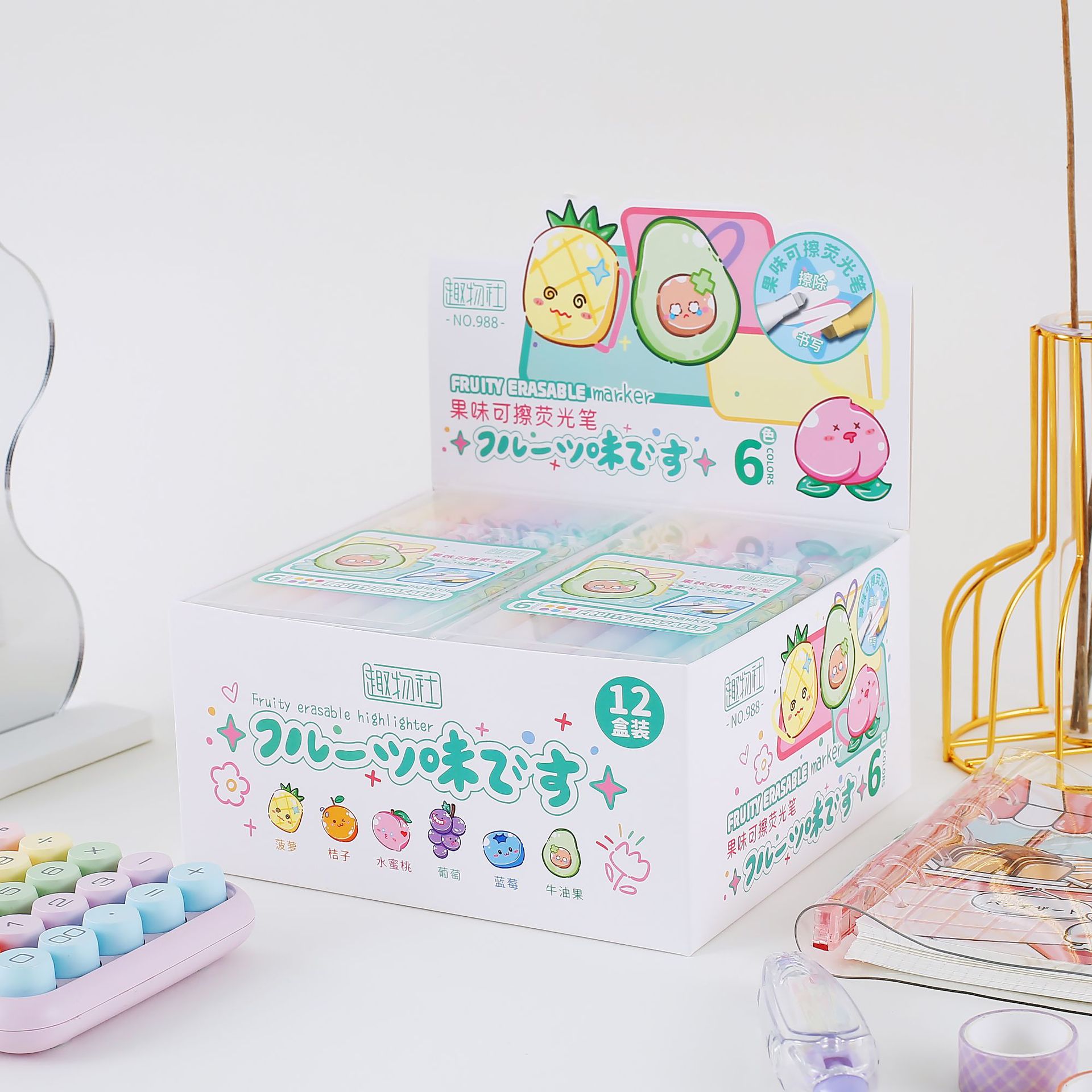 果味可擦荧光笔彩色涂鸦手账笔办公专用划重点标记水果香味荧光笔