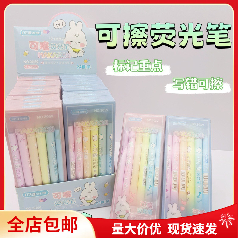 包郵便鋭牌3059新型蛍光ペン6色は学生の重点マークカラーペン児童漫画ペンを拭くことができる
