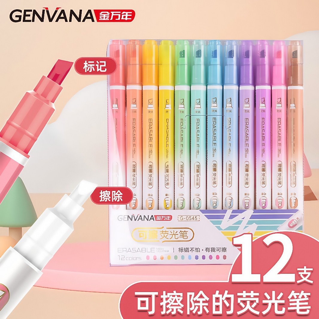 金万年自然色系消せる蛍光ペン、摩擦で色が変わるノートマーカー、学生向け変色水彩ペン、消せるデザイン