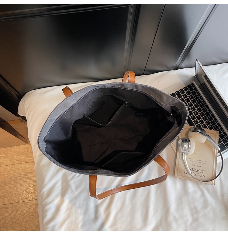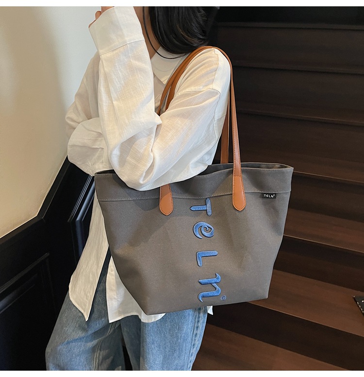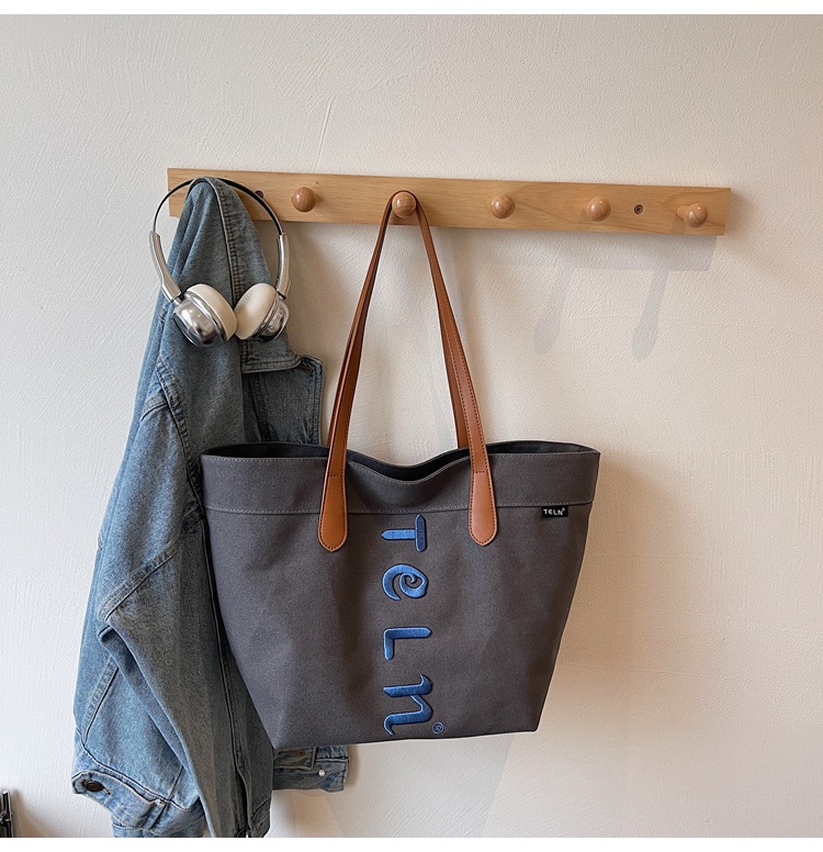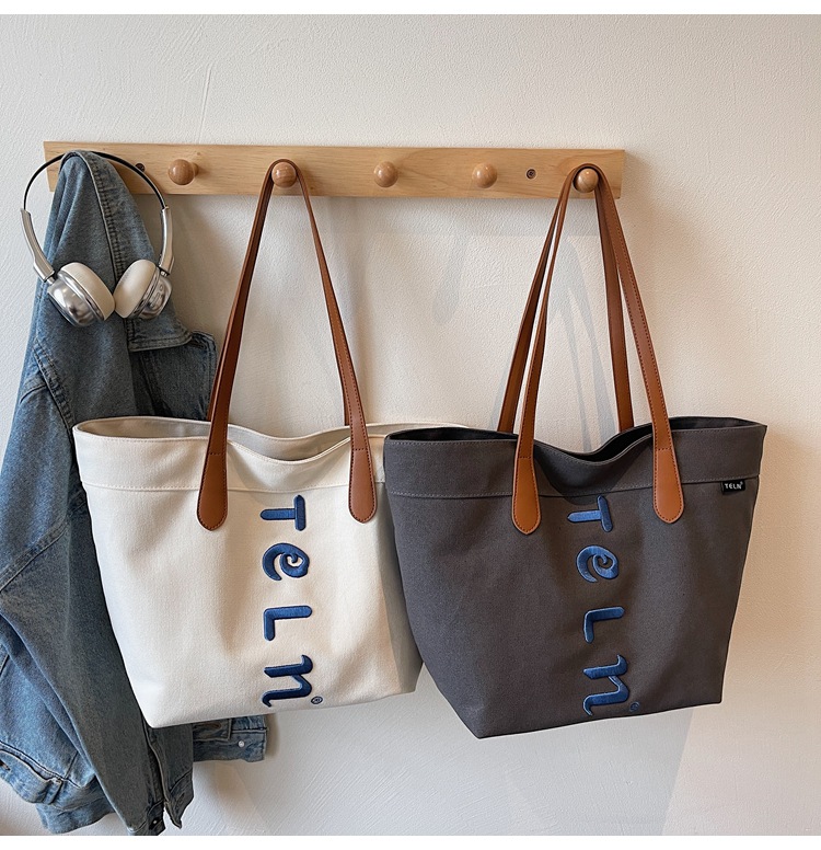 原宿风字母刺绣厚实帆布包包2025新款百搭休闲大容量托特单肩包女