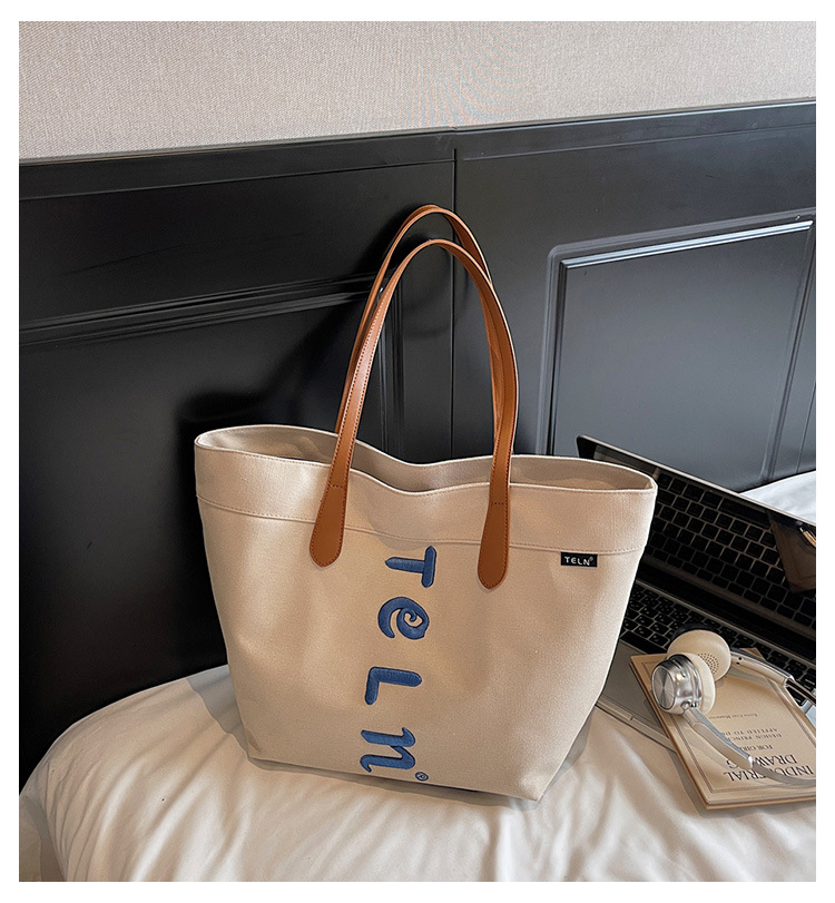 大容量キャンバスバッグ 2025 夏の新ショルダーバッグカジュアルトートバッグ文字刺繍トレンド通勤レディースバッグ