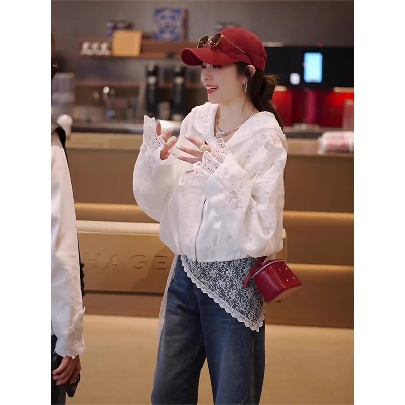 韓国レースフード付きスプライシングジャケット女性のための 2025 夏の新しいハイエンドニッチ非衝突デザインカーディガン