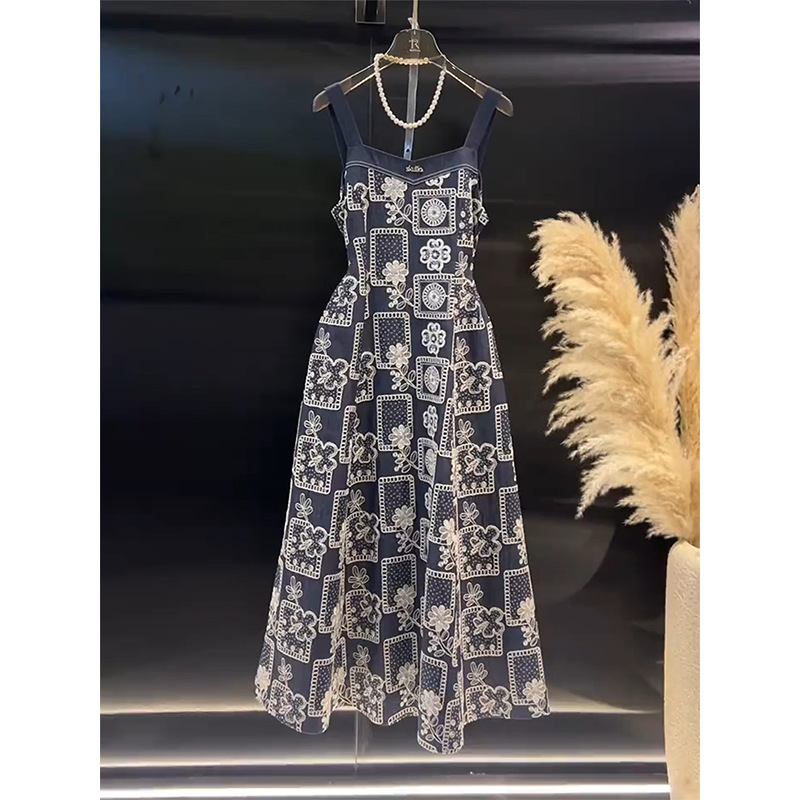 ユニークで超見栄えの良いデニムサスペンダードレスレディース2025夏新作気質ウエストフレンチロングスカート