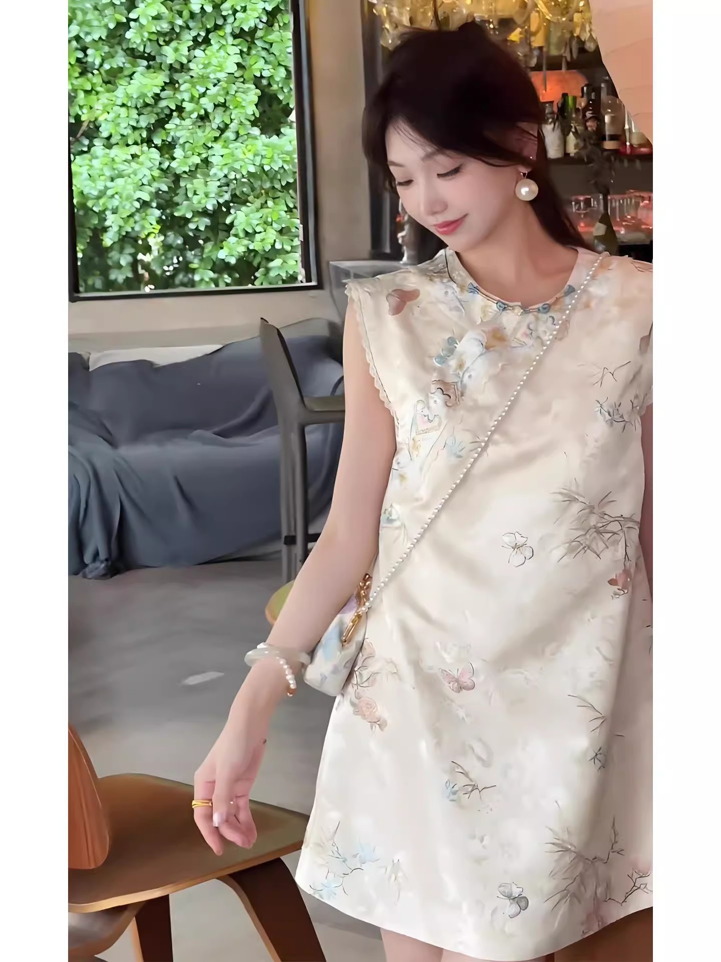 新しい中国風のプリントチャイナドレス女性の夏の新しい国民風デザイン気質ロングスカート