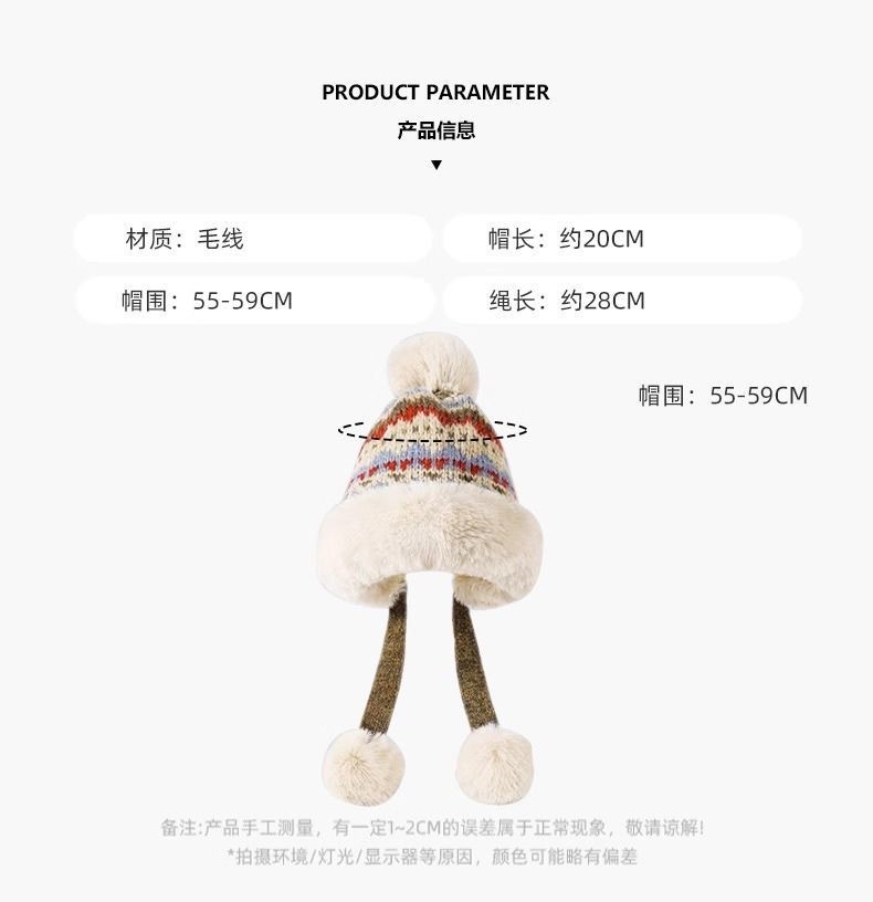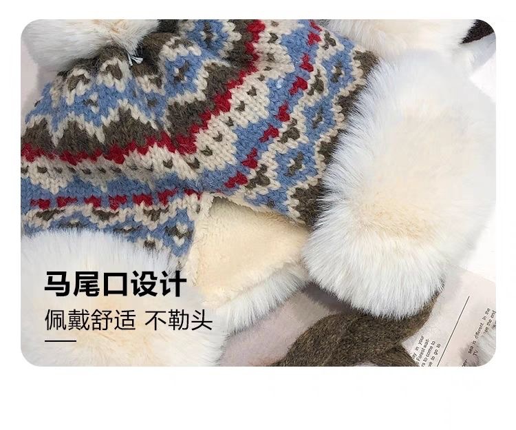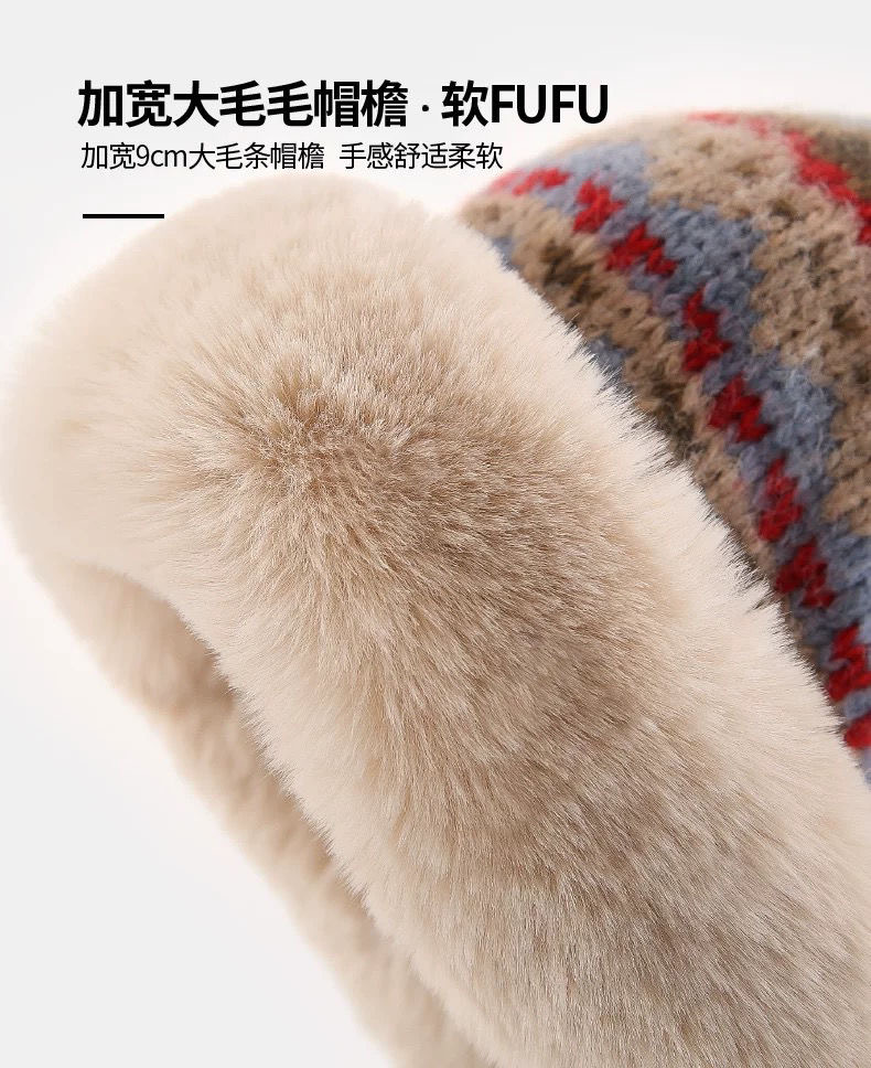 冬季毛绒保暖护耳防风针织帽女加绒加厚防寒毛线帽复古民族风帽子