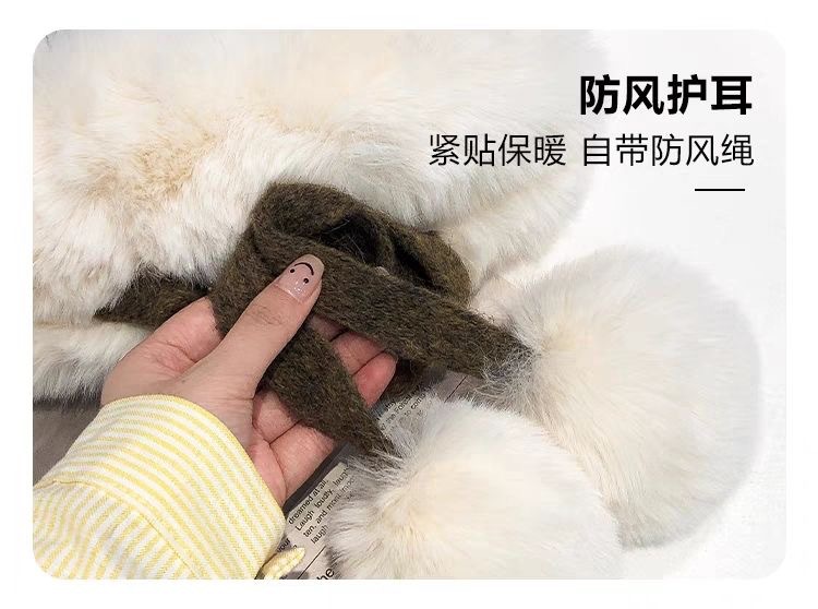 帽子女性の冬のかわいいクマの耳ぬいぐるみ帽子暖かい耳保護帽子プラスベルベット防風ウールボール帽子冬の新スタイル