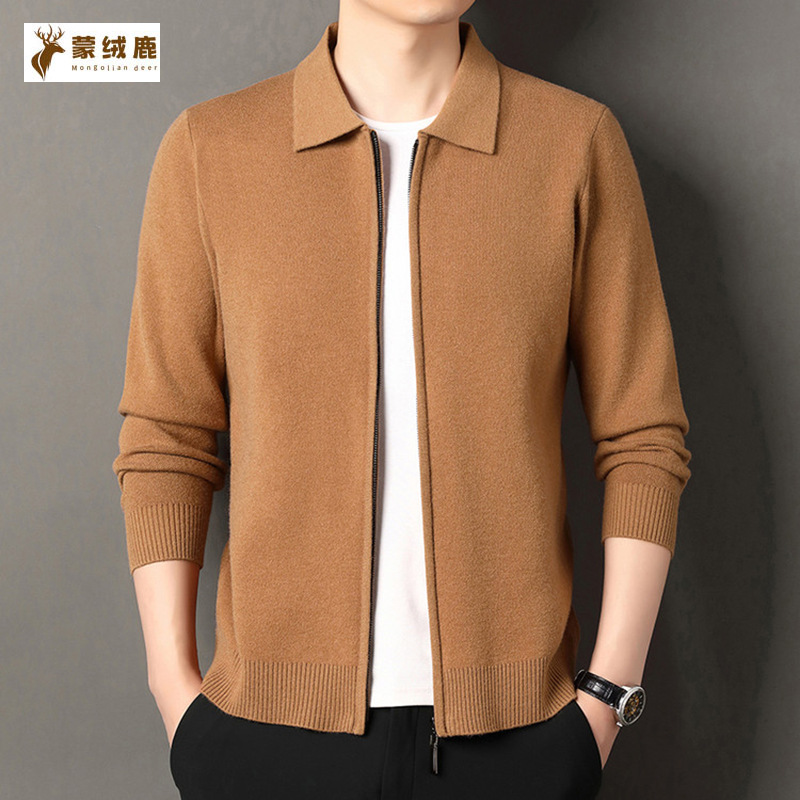 高端翻领羊毛衫针织衫中年男士拉链开衫毛衣时尚休闲纯色保暖外套