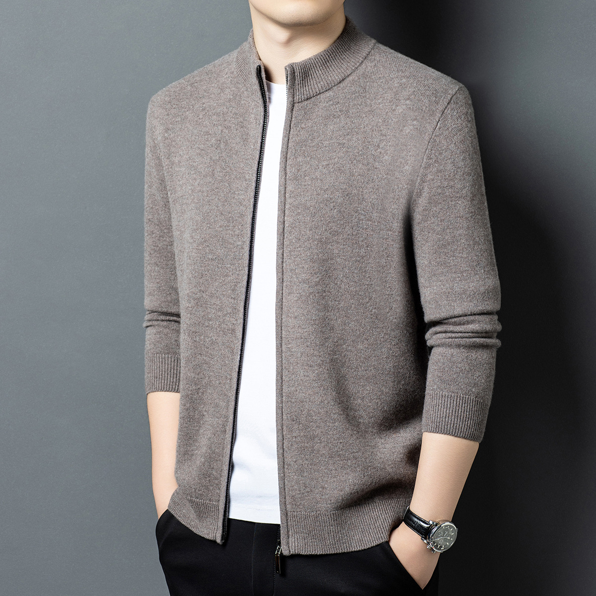 2025秋冬100%纯羊毛针织衫高端毛衣秋冬中年男士休闲拉链开衫外套