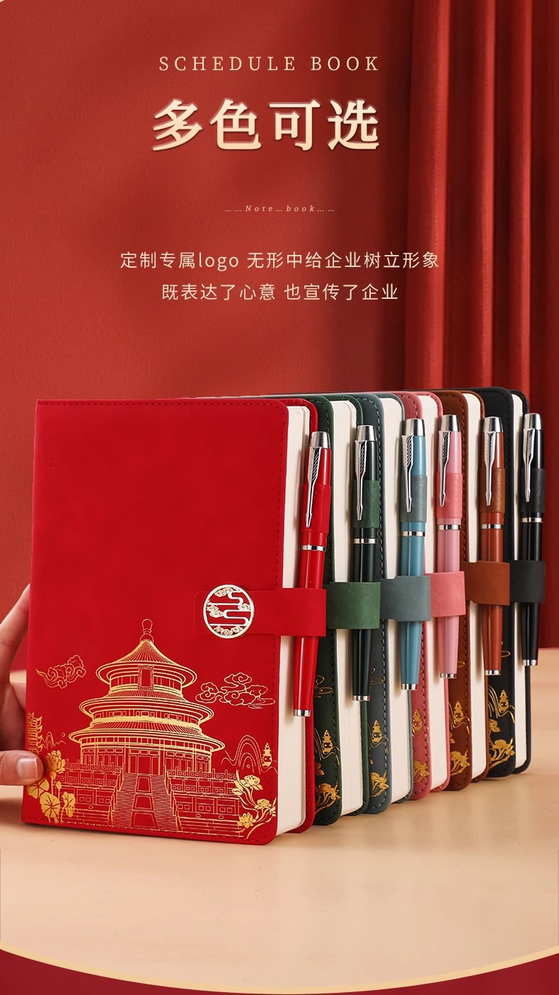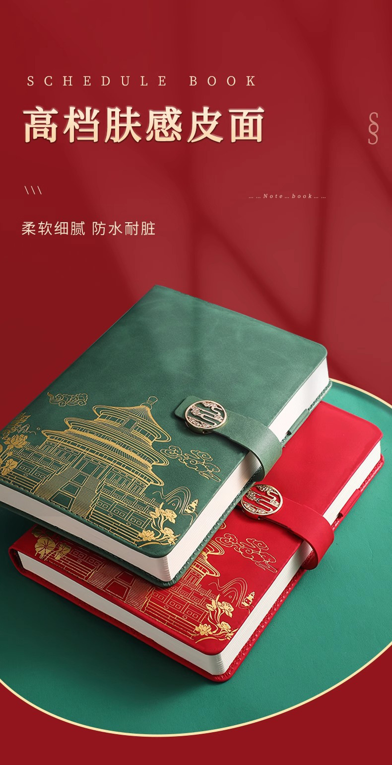 ノートノート国潮風ノート厚手手帳日記帳a5バックル皮面ビジネス会議記録本