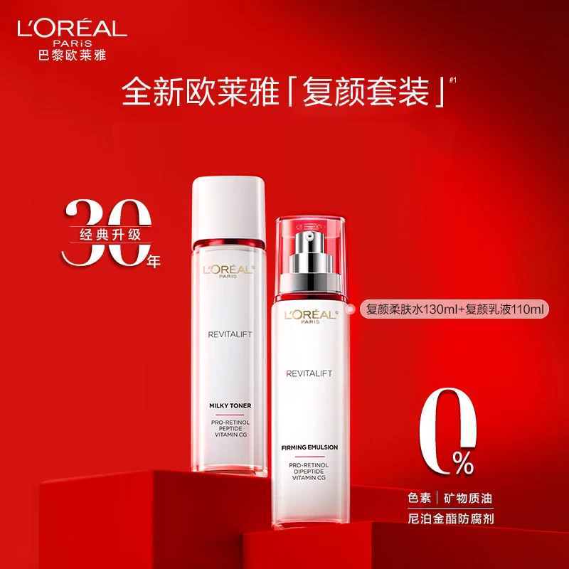 欧莱雅复颜专研水乳130ml+110ml两件套视黄醇护肤品情人节送礼物
