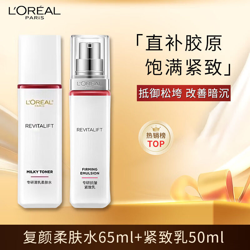 欧莱雅花蜜胶原水乳套装精粹水65ml+乳液50ml中样护肤品礼物送人