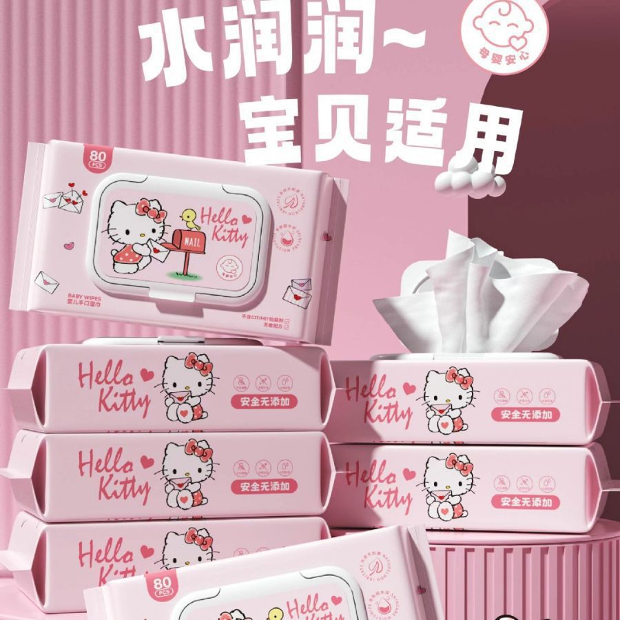 三丽鸥纯水湿巾正版儿童掀盖式婴儿手口擦脸湿纸巾一次性家用批发
