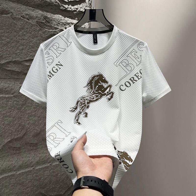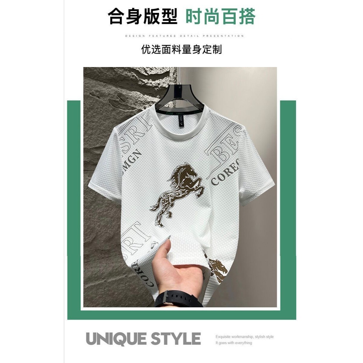 源メーカーの新型半袖tシャツ男性の夏の薄いタイプの氷糸の通気性の潮流は潮牌ins男子をtシャツします。