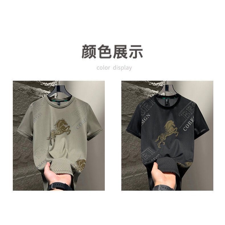 源头厂家夏季新款冰丝短袖男男装凉感衣潮流休闲t恤圆领半袖体恤