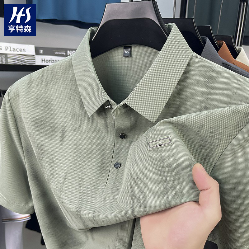 桑絹糸無痕襟メンズポロシャツ2025夏新作純色ビジネス通気性薄い半袖男