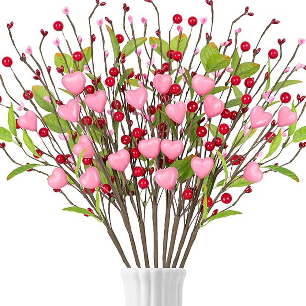 跨境情人节爱心插枝节日心形浆果家居装饰插花装饰品新款氛围布置