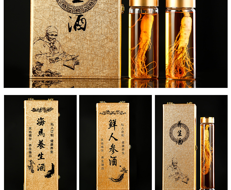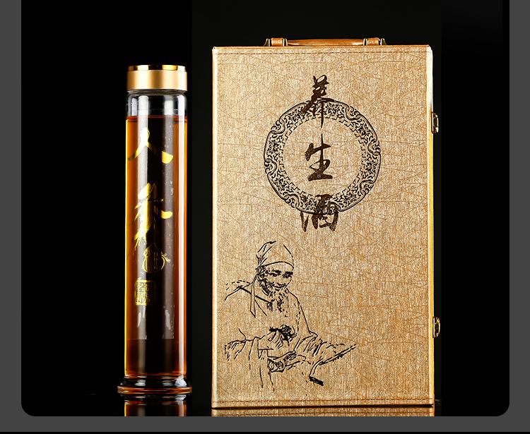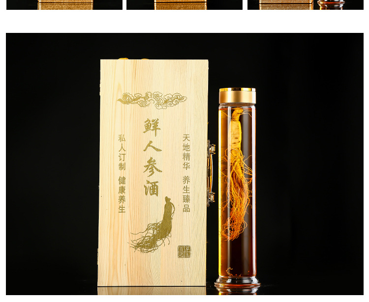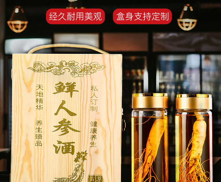高档人参酒瓶包装木盒泡酒玻璃瓶包装空盒海马鹿茸酒实木礼盒包装