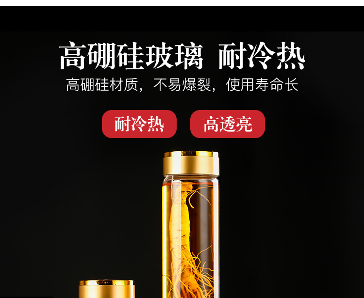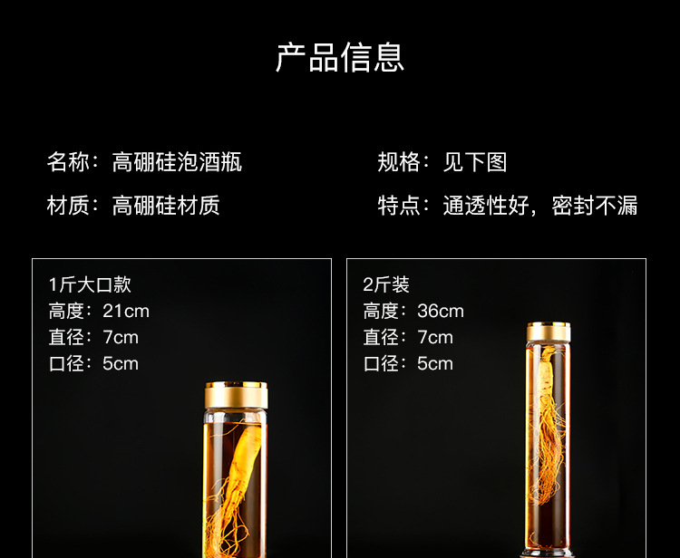 高麗人参虫草高ホウ素シリコンガラス泡酒瓶細長密封缶養身瓶広口酒桶耐熱ガラス管