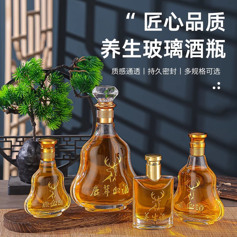 ワインガラスボトル、家庭用高級密封空ボトル、大容量高麗人参と鹿の角の健康特別ギフトボックス、薬用ワインボトル