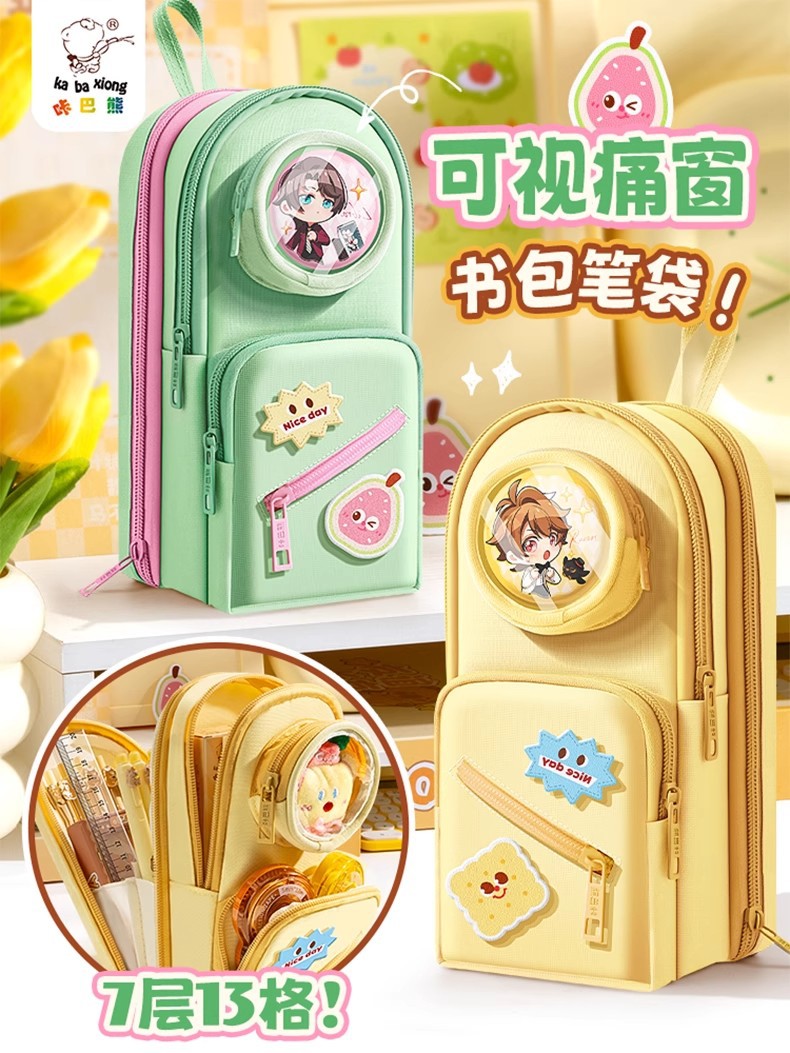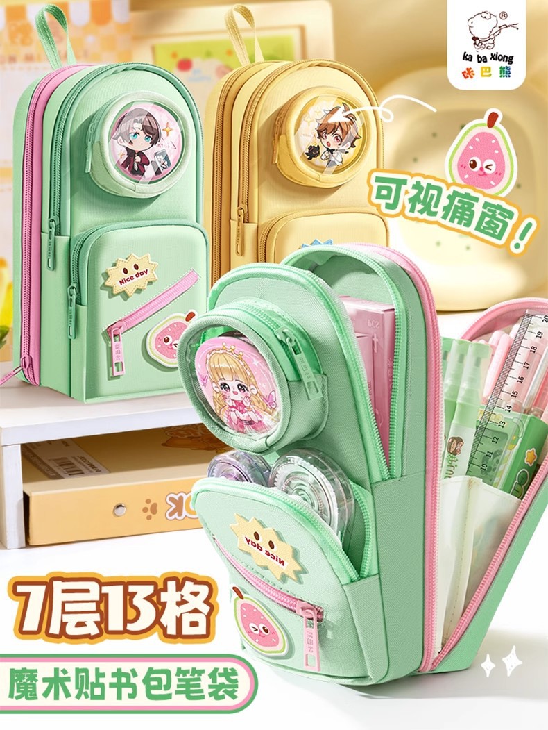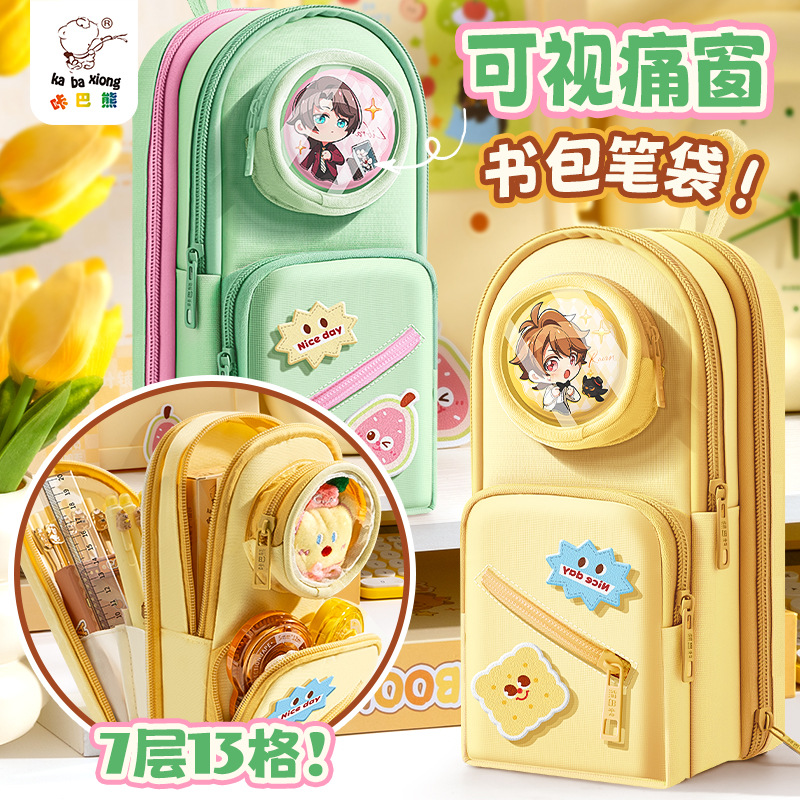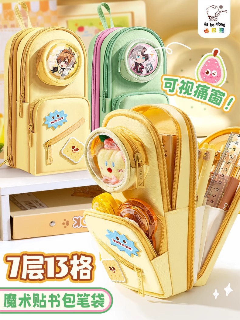 咔巴熊书包笔袋高颜值多层大容量文具盒小学生可爱文具收纳袋