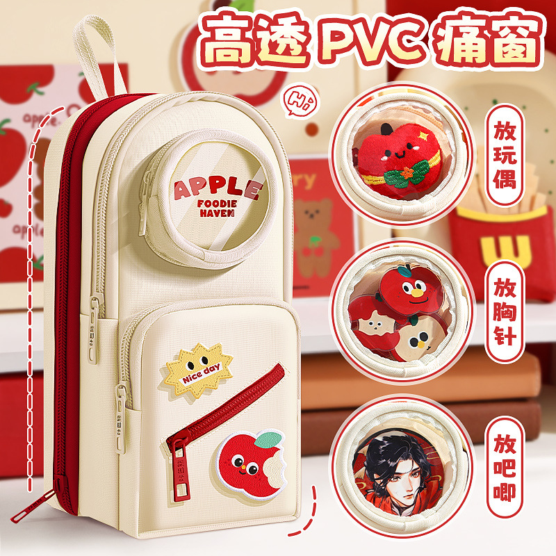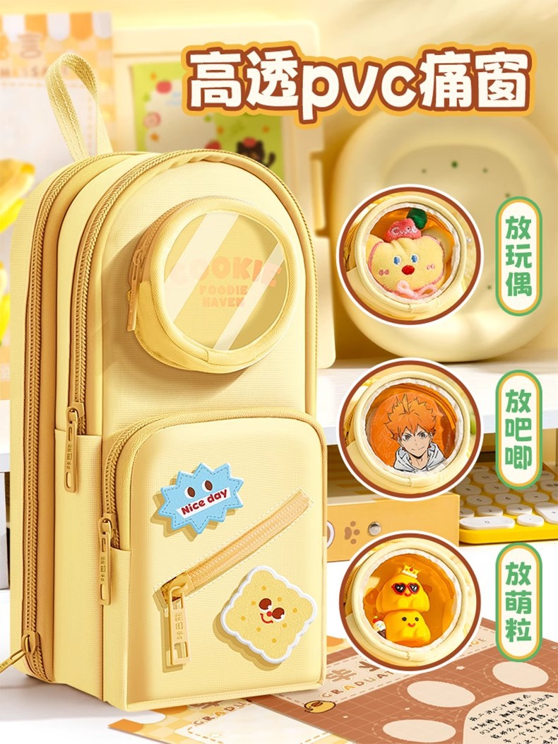 咔巴熊大容量书包笔袋高颜值小学生开学文具盒可视痛窗魔术贴笔袋