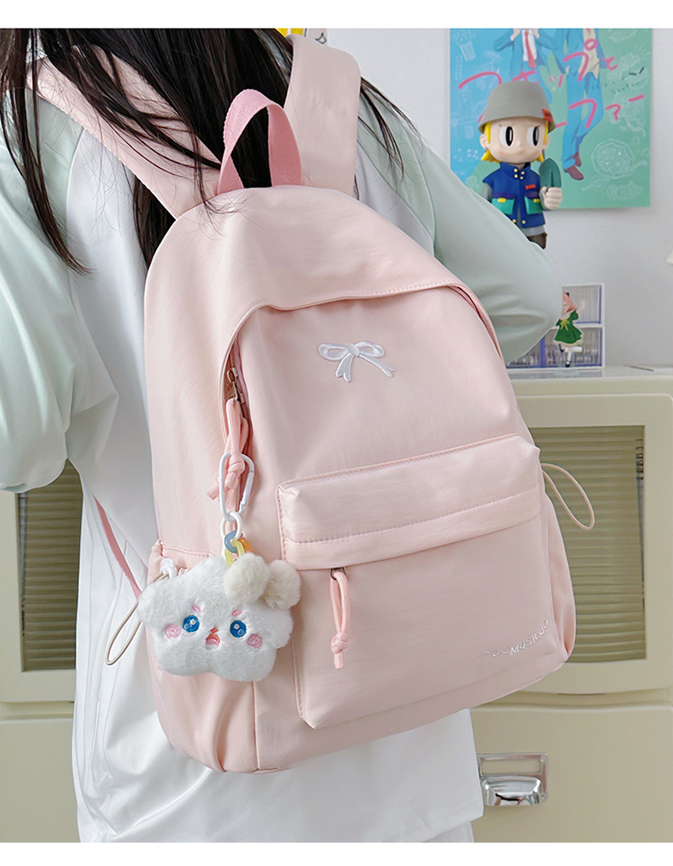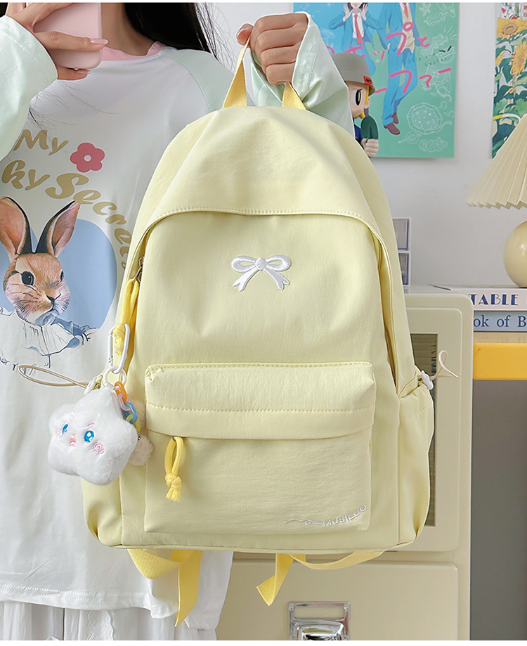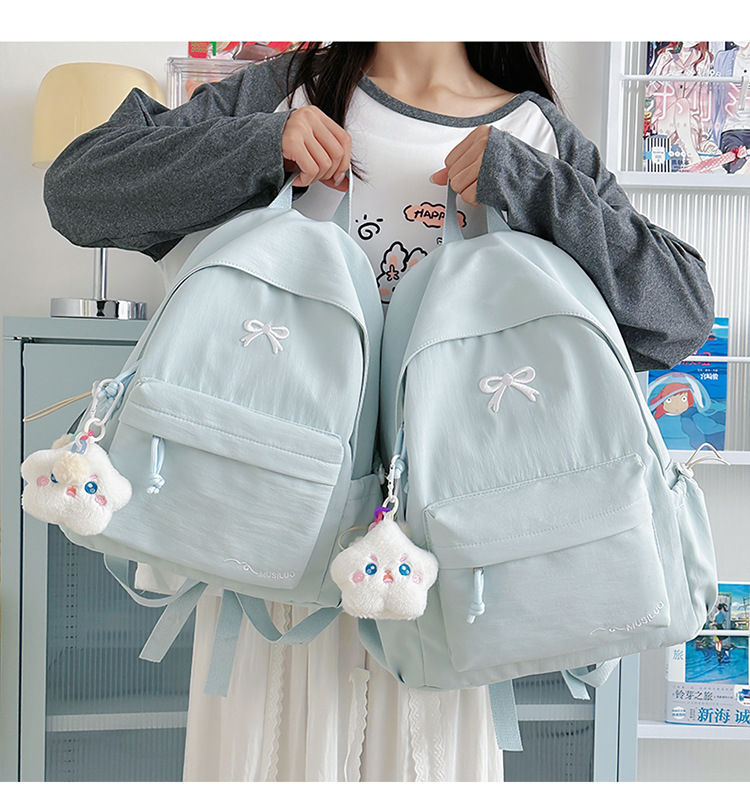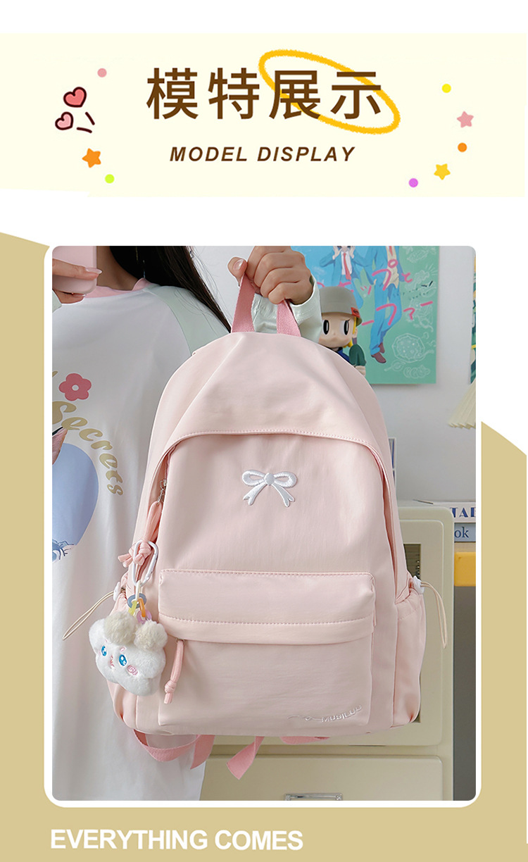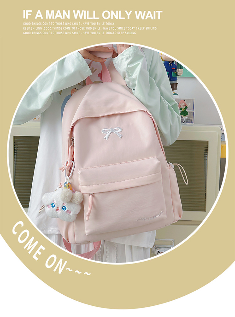 大学生双肩包初中生电脑包韩版简约少女蝴蝶结书包大容量背包女