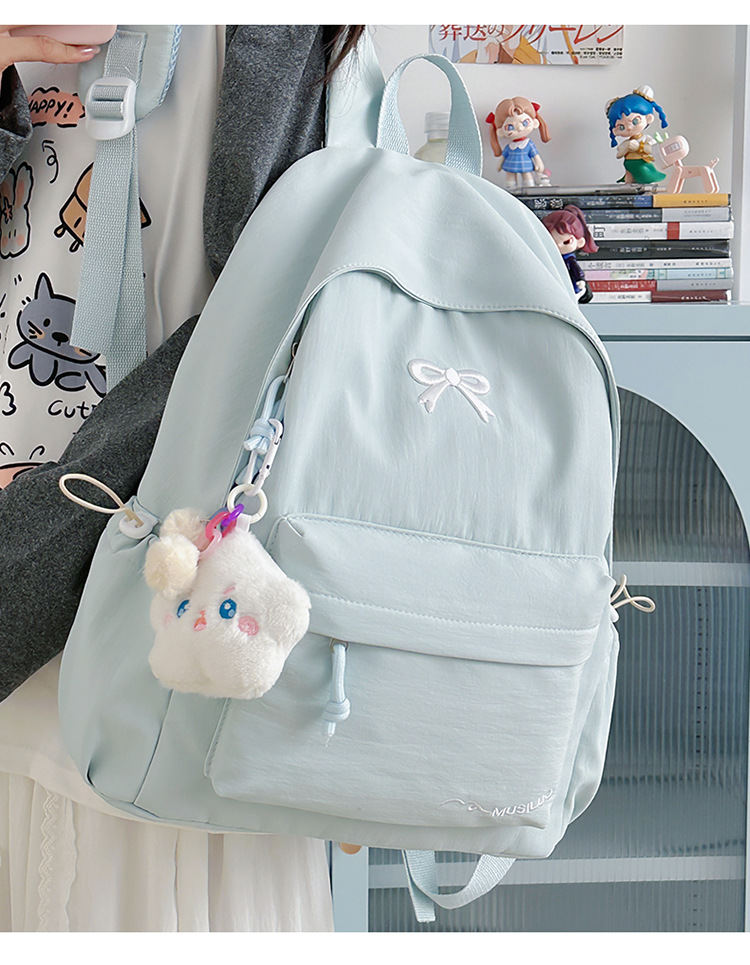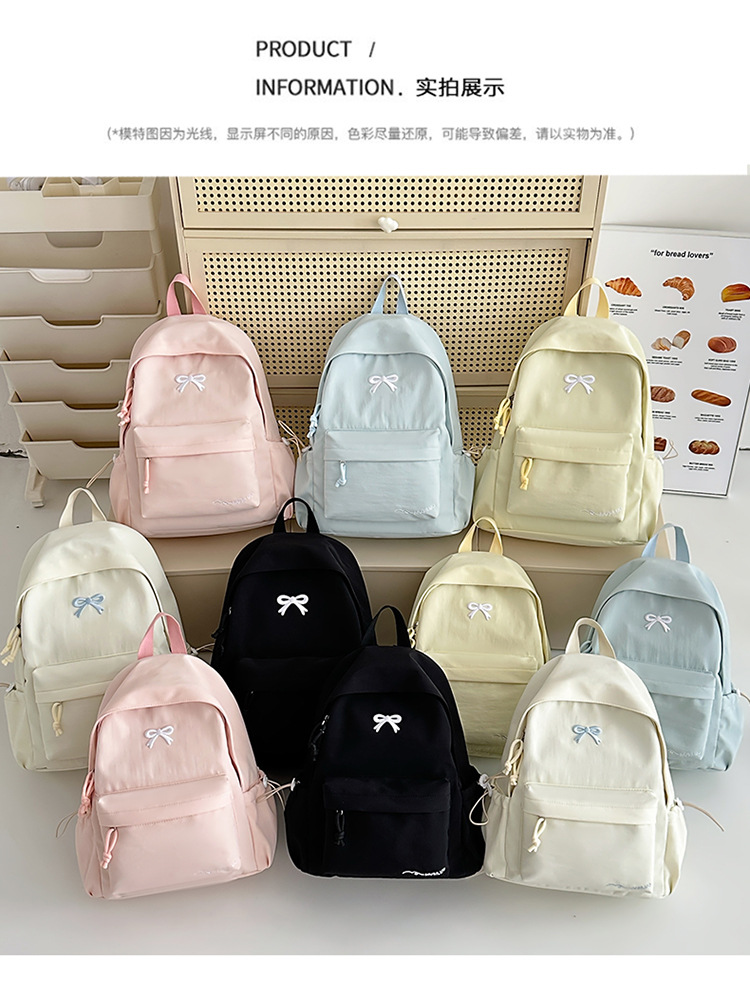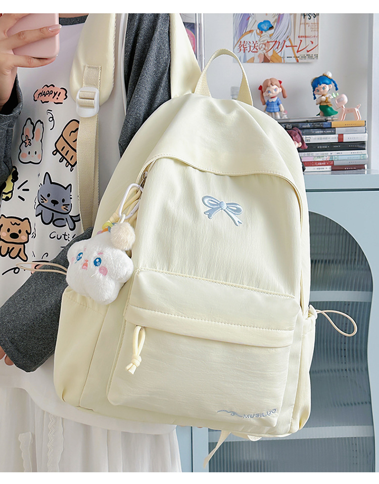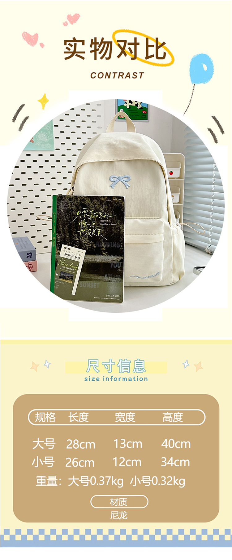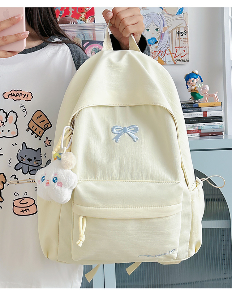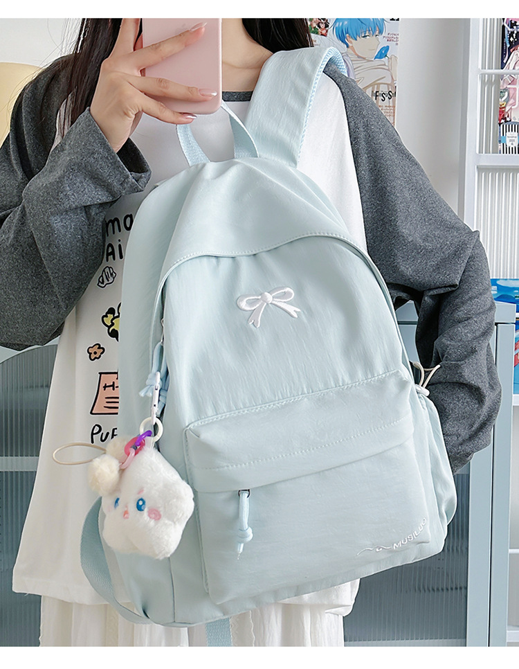 韩系书包休闲大学生初中生少女心刺绣蝴蝶结双肩包轻便旅游背包