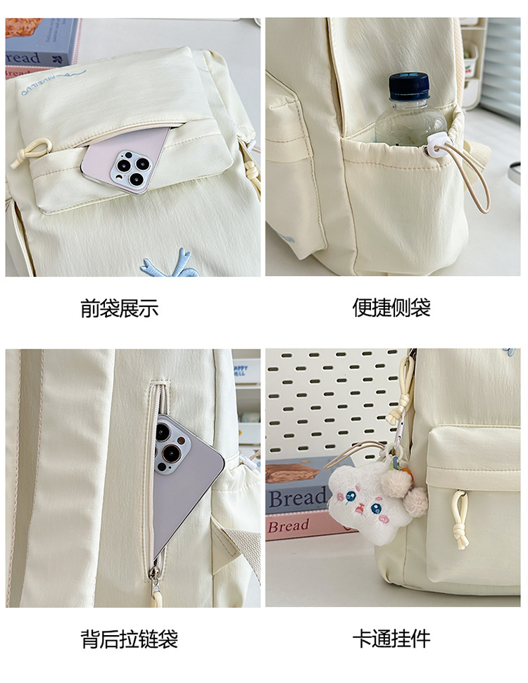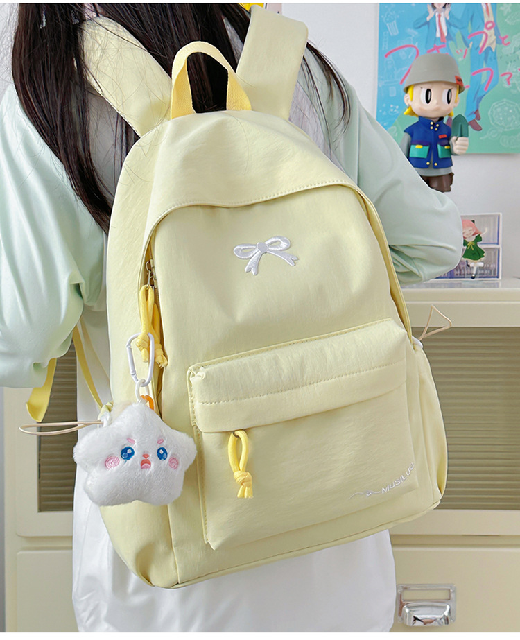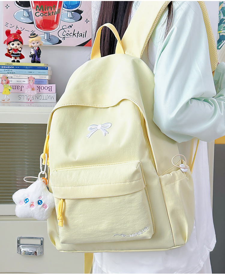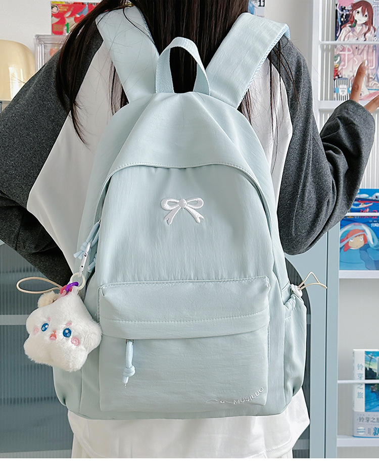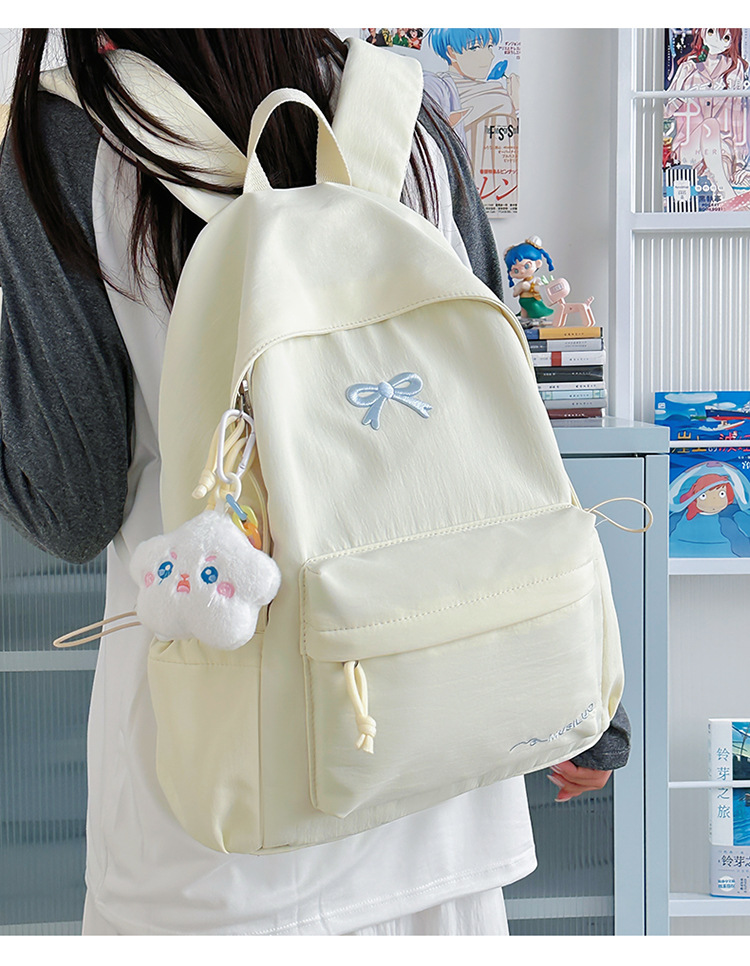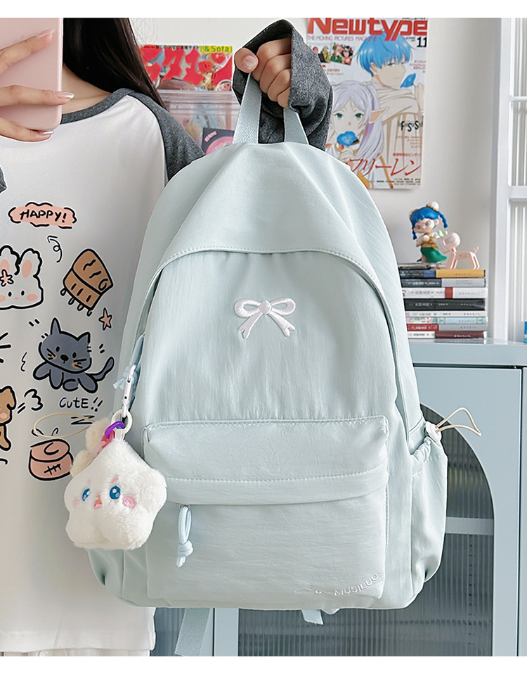 韩系书包休闲大学生初中生少女心刺绣蝴蝶结双肩包轻便旅游背包