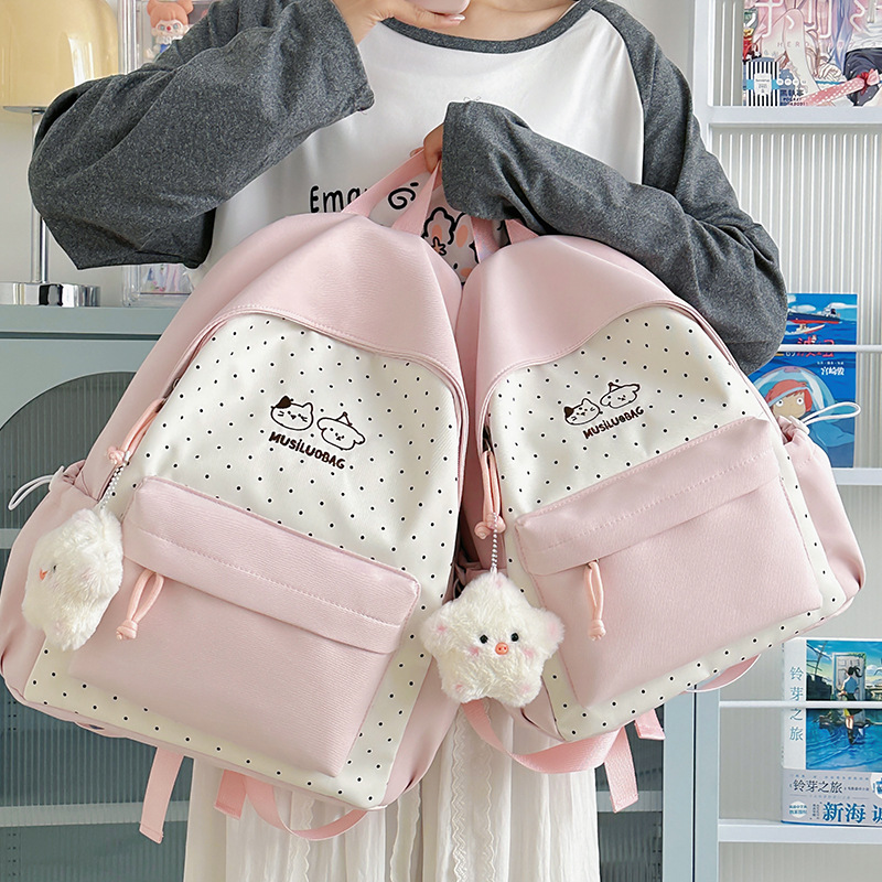 新款日系ins高颜值清新甜美波点背包初高中生轻便大容量双肩包