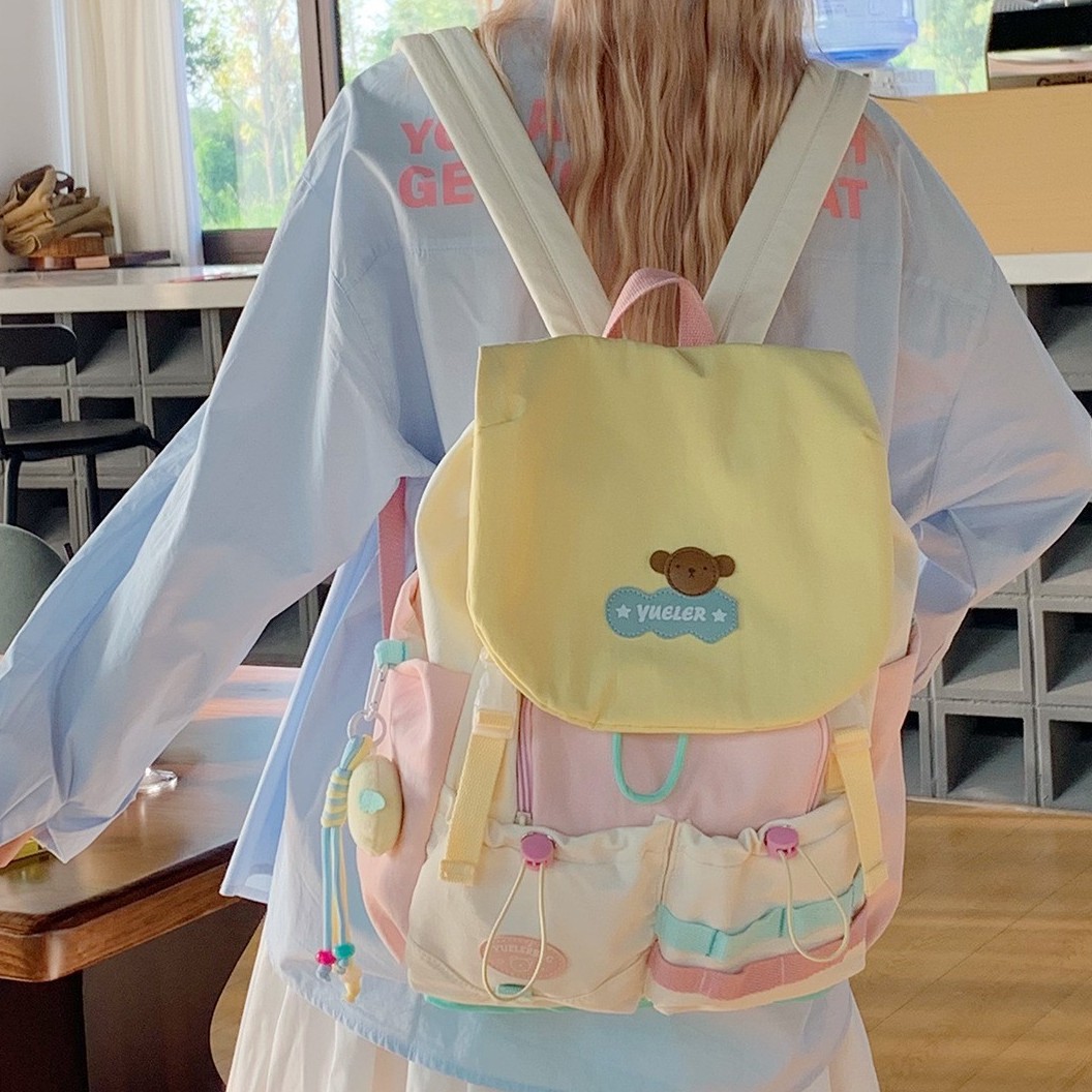 新しい和風の高見えする爽やかで甘いキャンディーカラーのバックパック中学生と高校生向け軽量大容量旅行バックパック