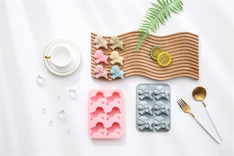 现货 6连小羊造型硅胶模具软糖果巧克力蛋糕模手工皂滴胶冰块模具