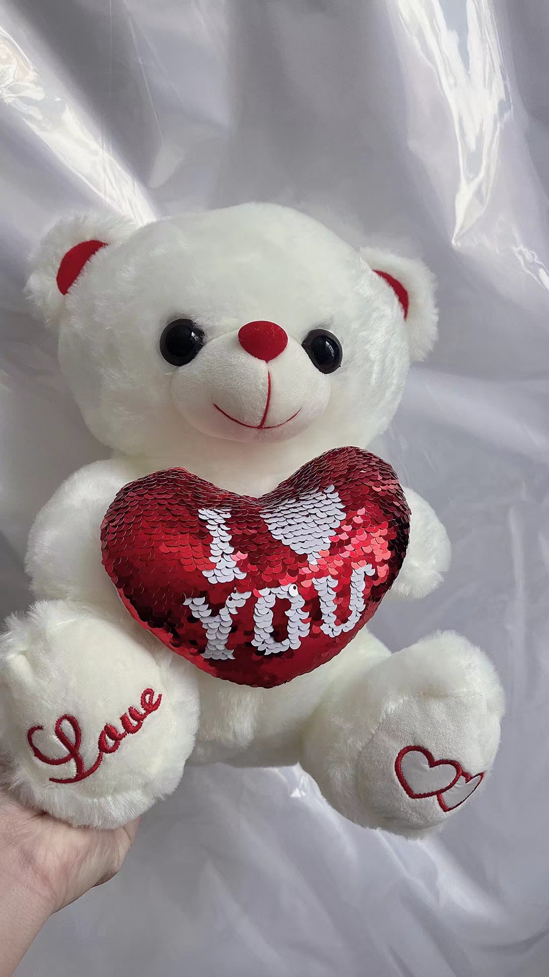 跨境卡通抱心亮片小熊泰迪熊公仔毛绒玩具爱心熊抱抱熊玩偶儿童布