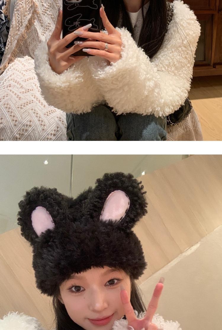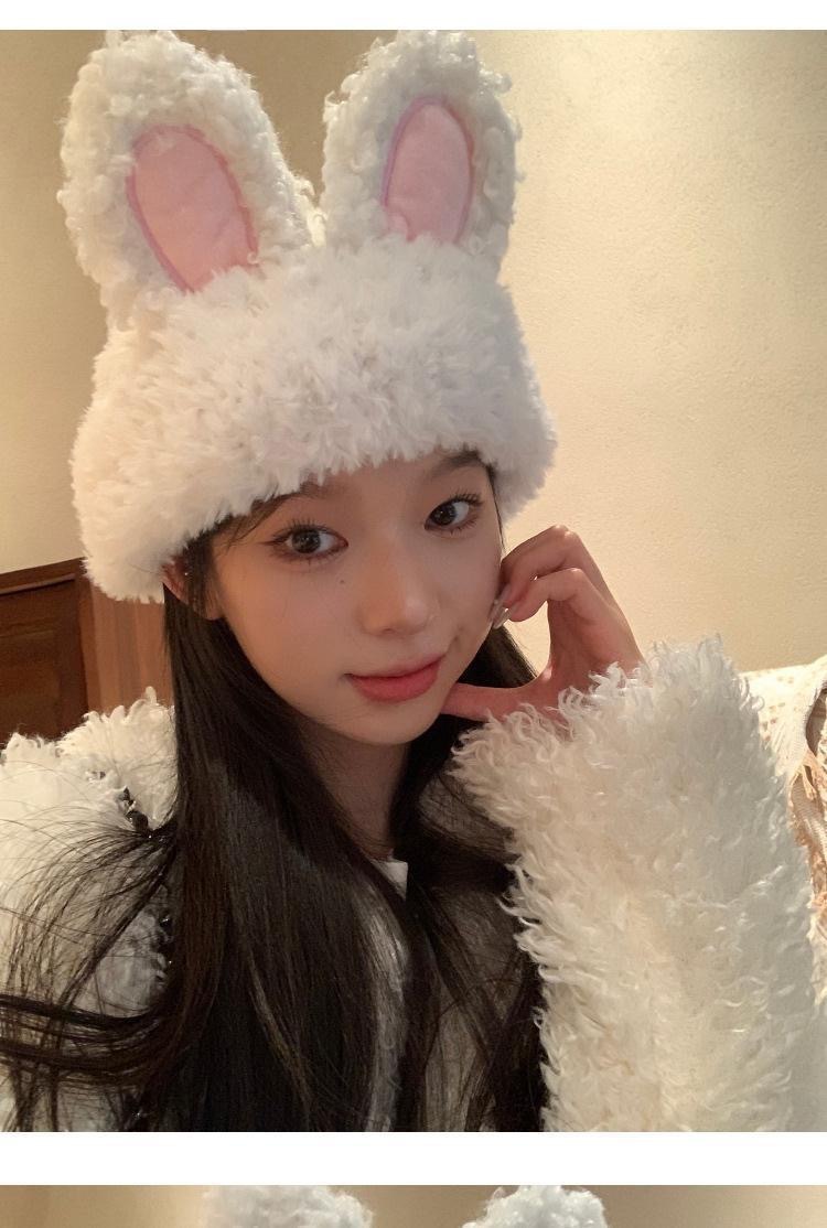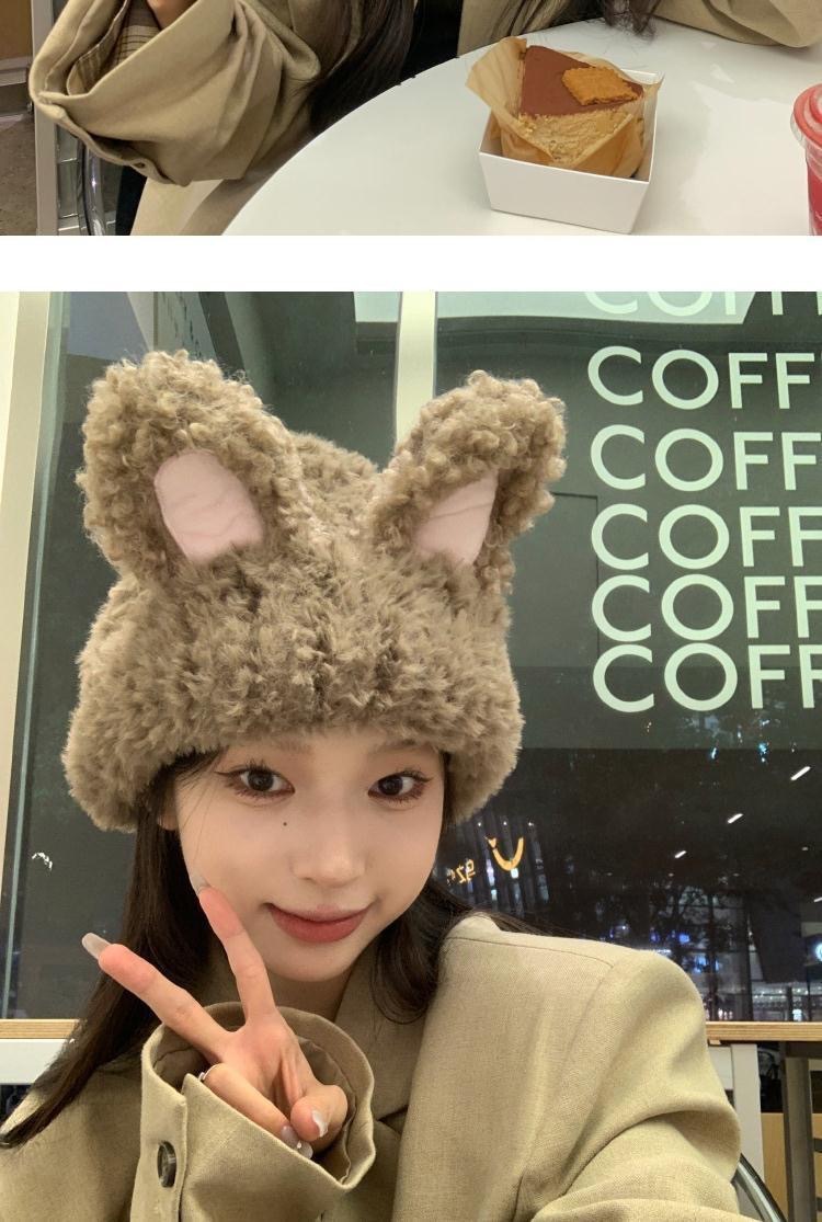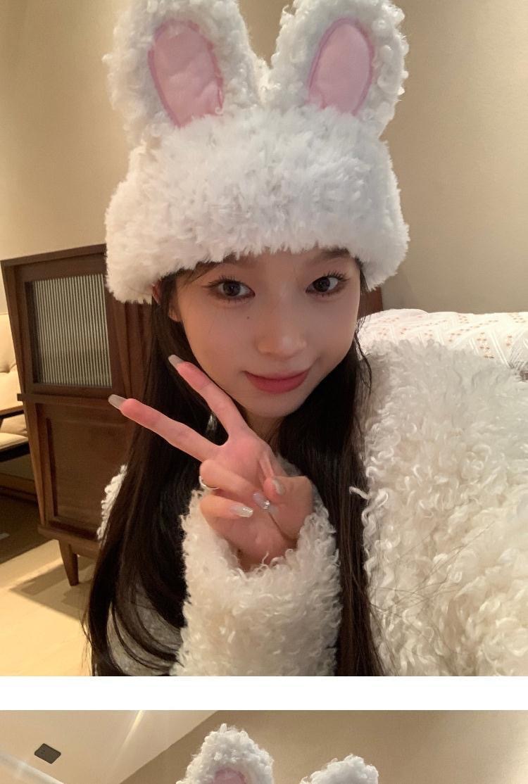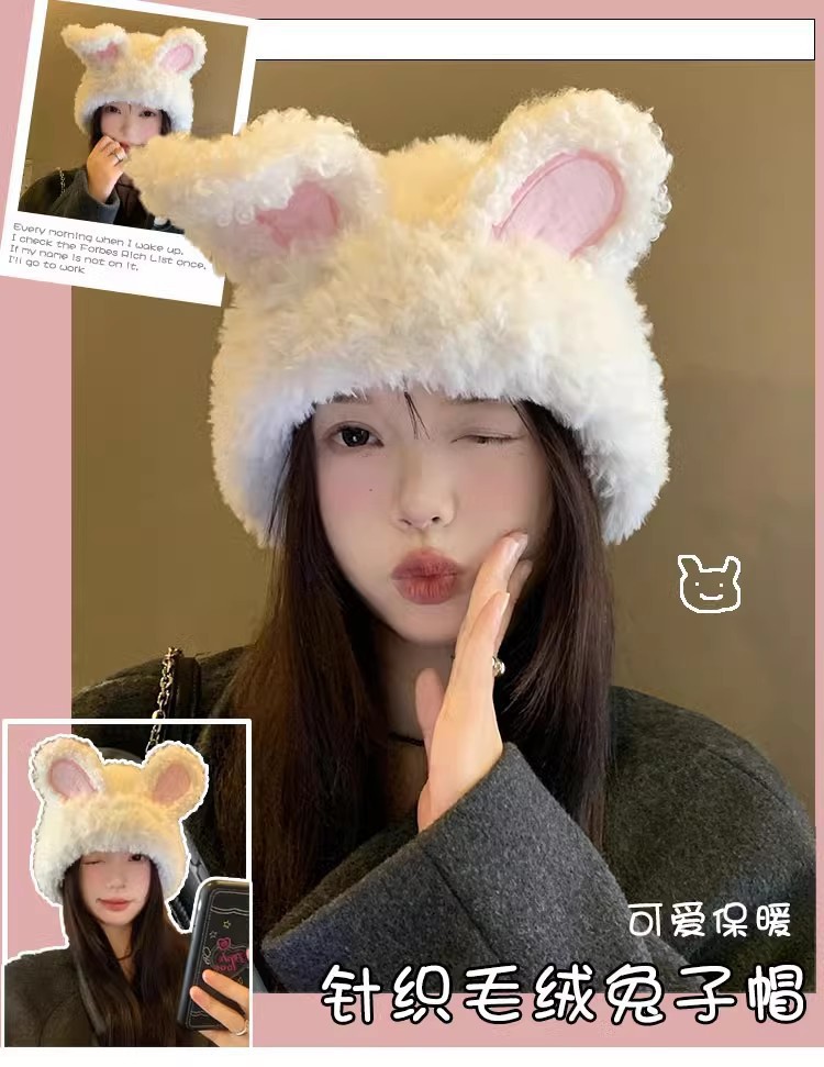 秋冬韩版新款可爱甜美兔耳朵毛绒帽子女保暖防寒毛线帽百搭针织帽