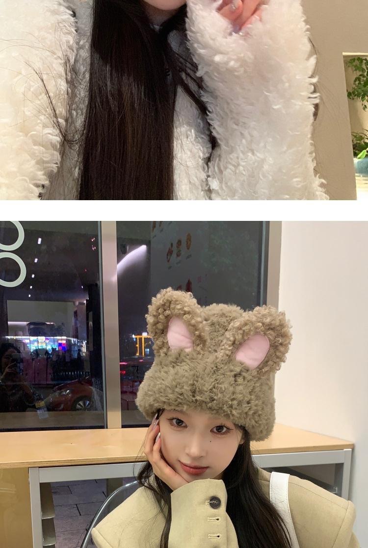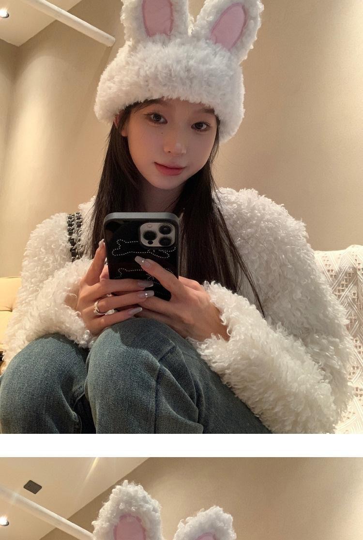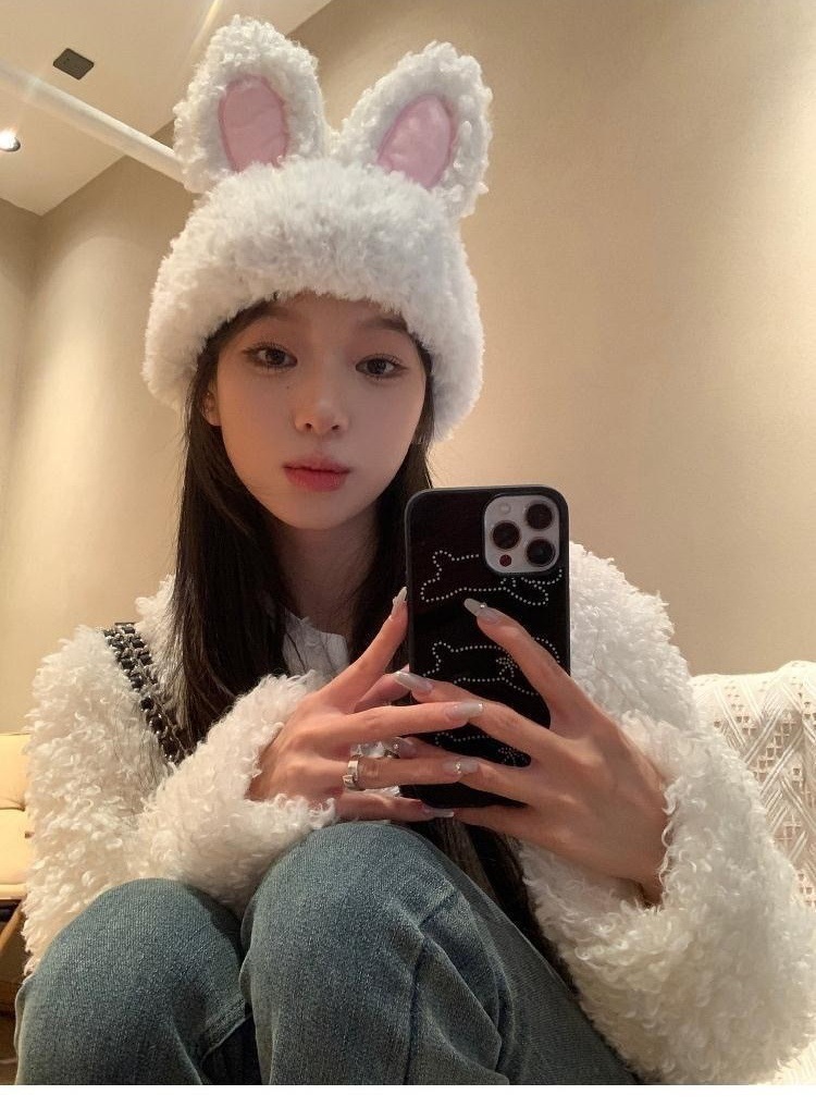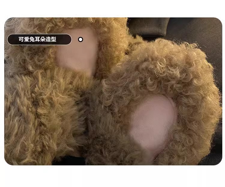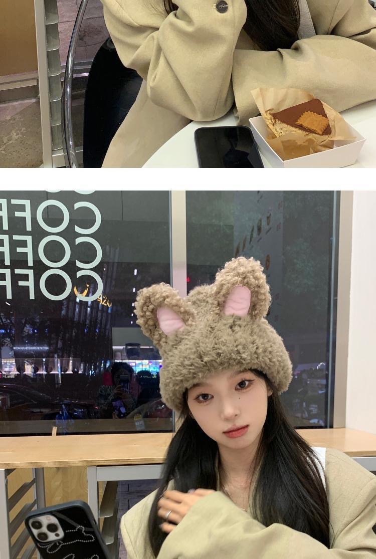 秋冬韩版新款可爱甜美兔耳朵毛绒帽子女保暖防寒毛线帽百搭针织帽