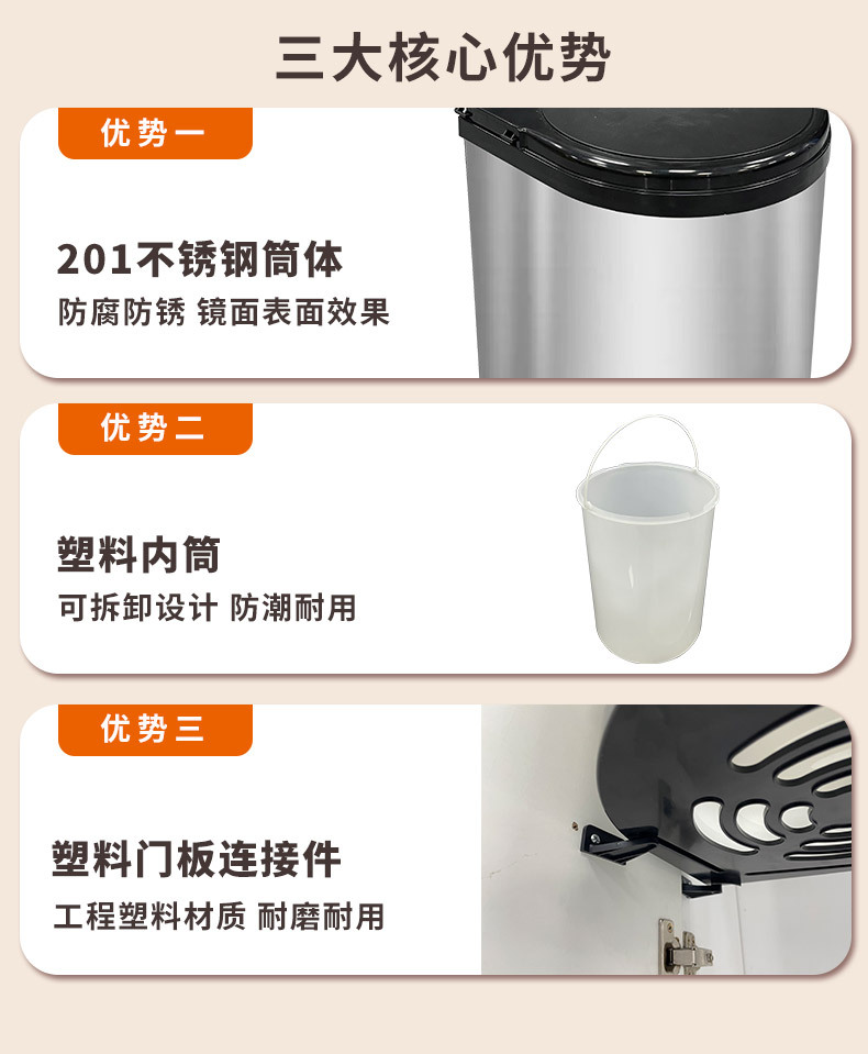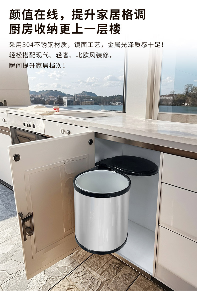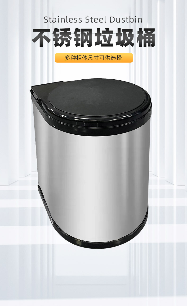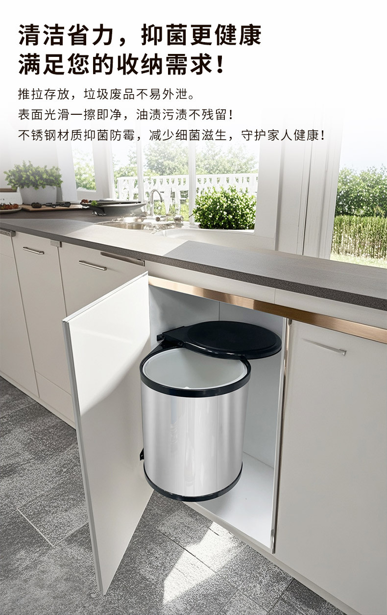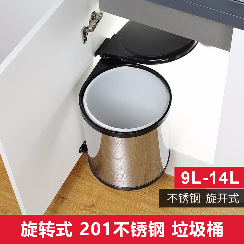 实力工厂201不锈钢嵌入内旋垃圾桶厨房隐藏式塑料收纳柜内垃圾桶