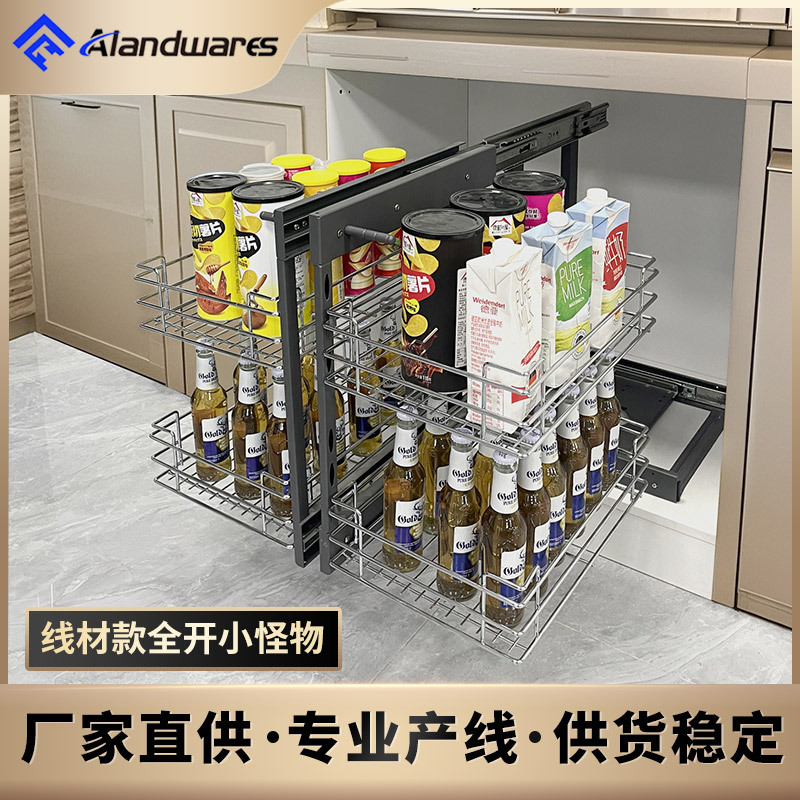 キッチンキャビネット大型アルミ製プルアウトバスケット、スナックキャビネット、ハイキャビネット、開閉連動式多層収納プルアウトバスケット、大量注文可相談