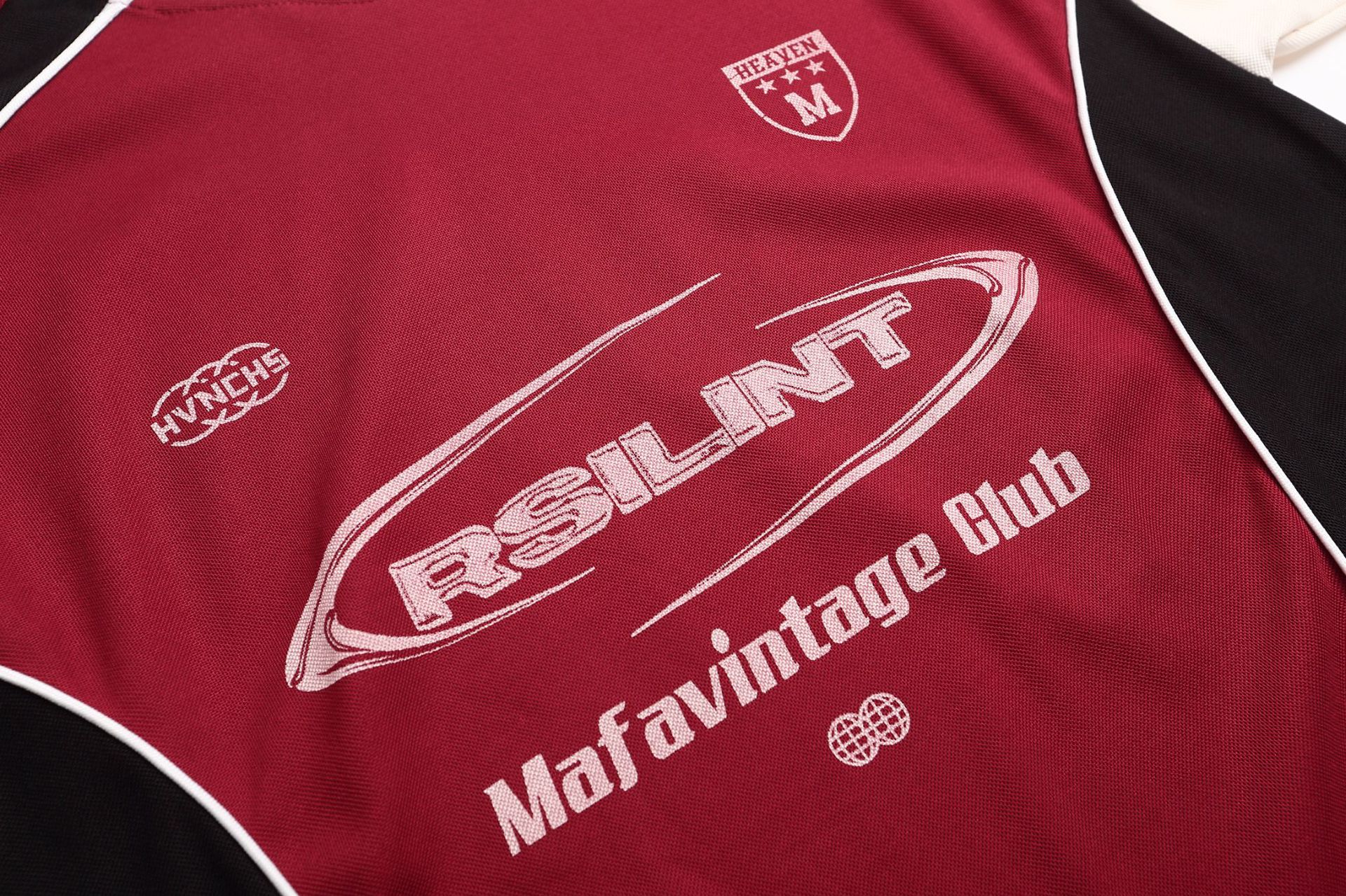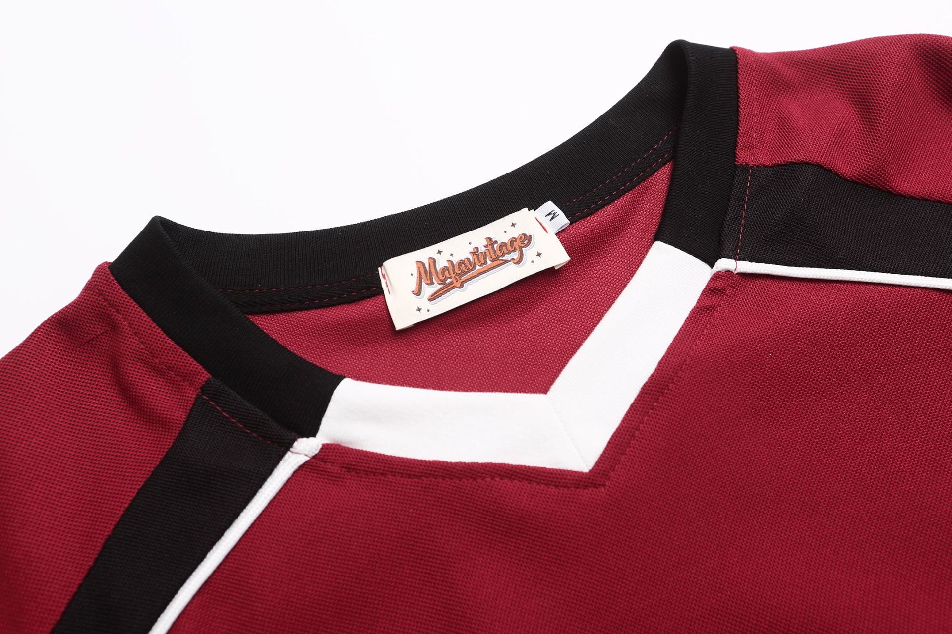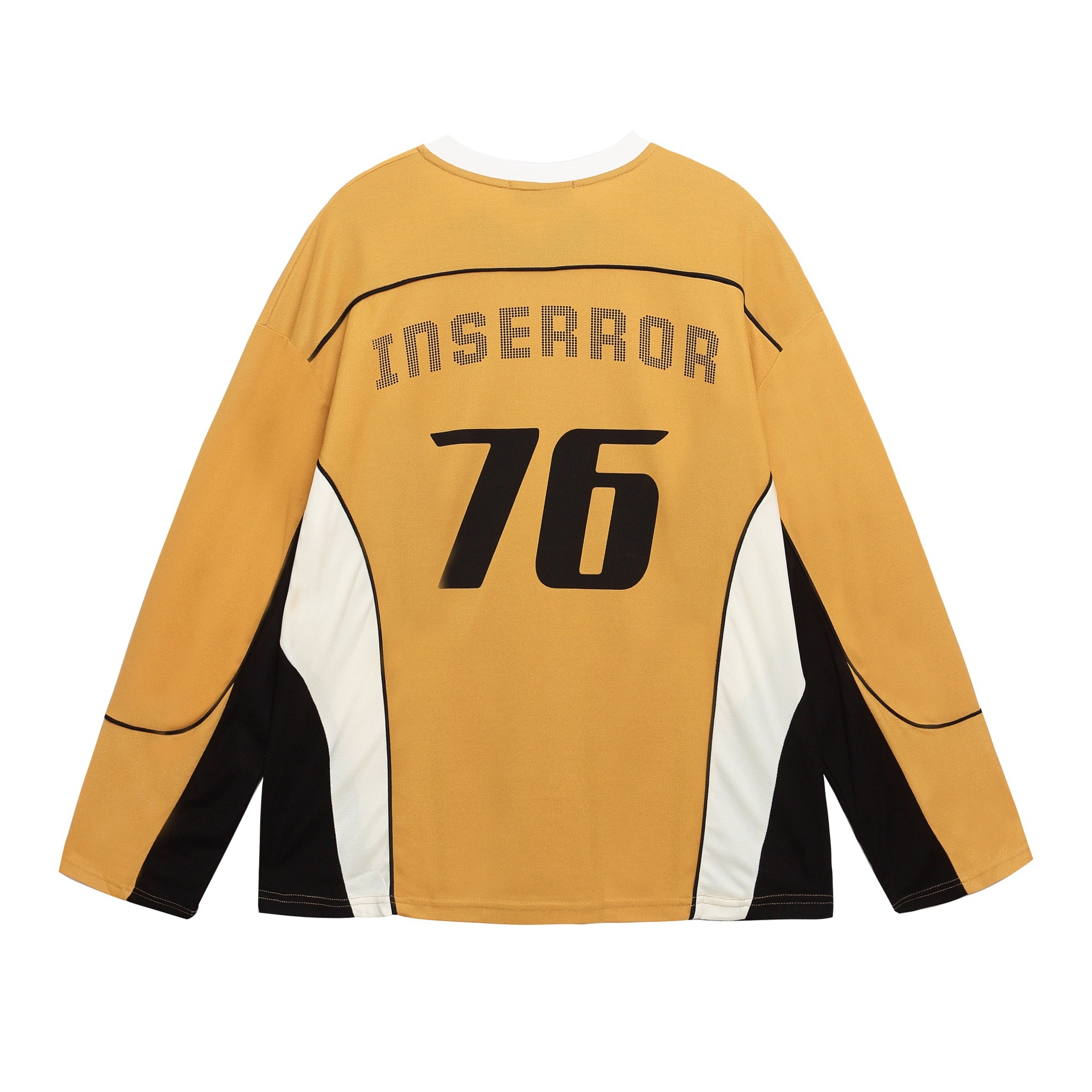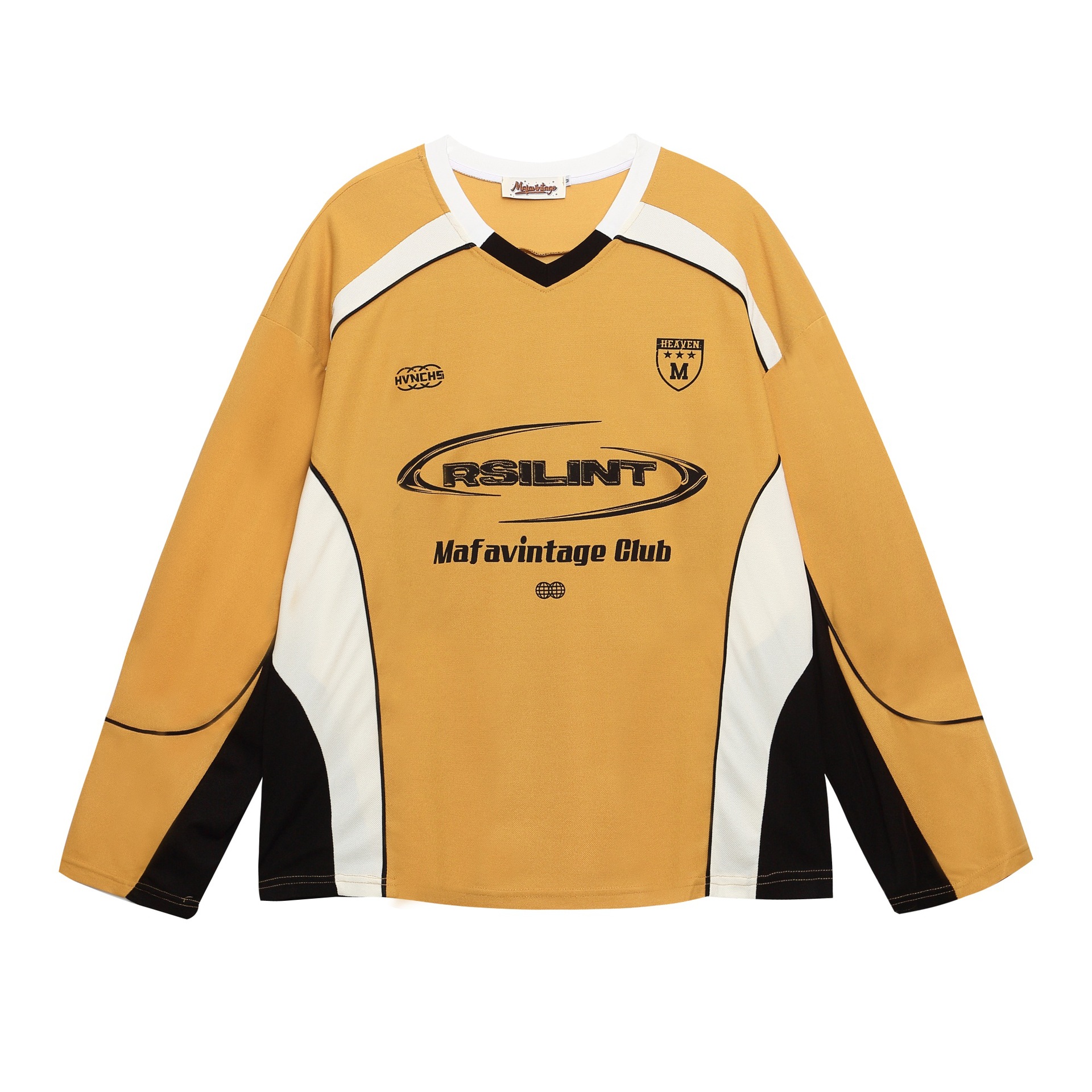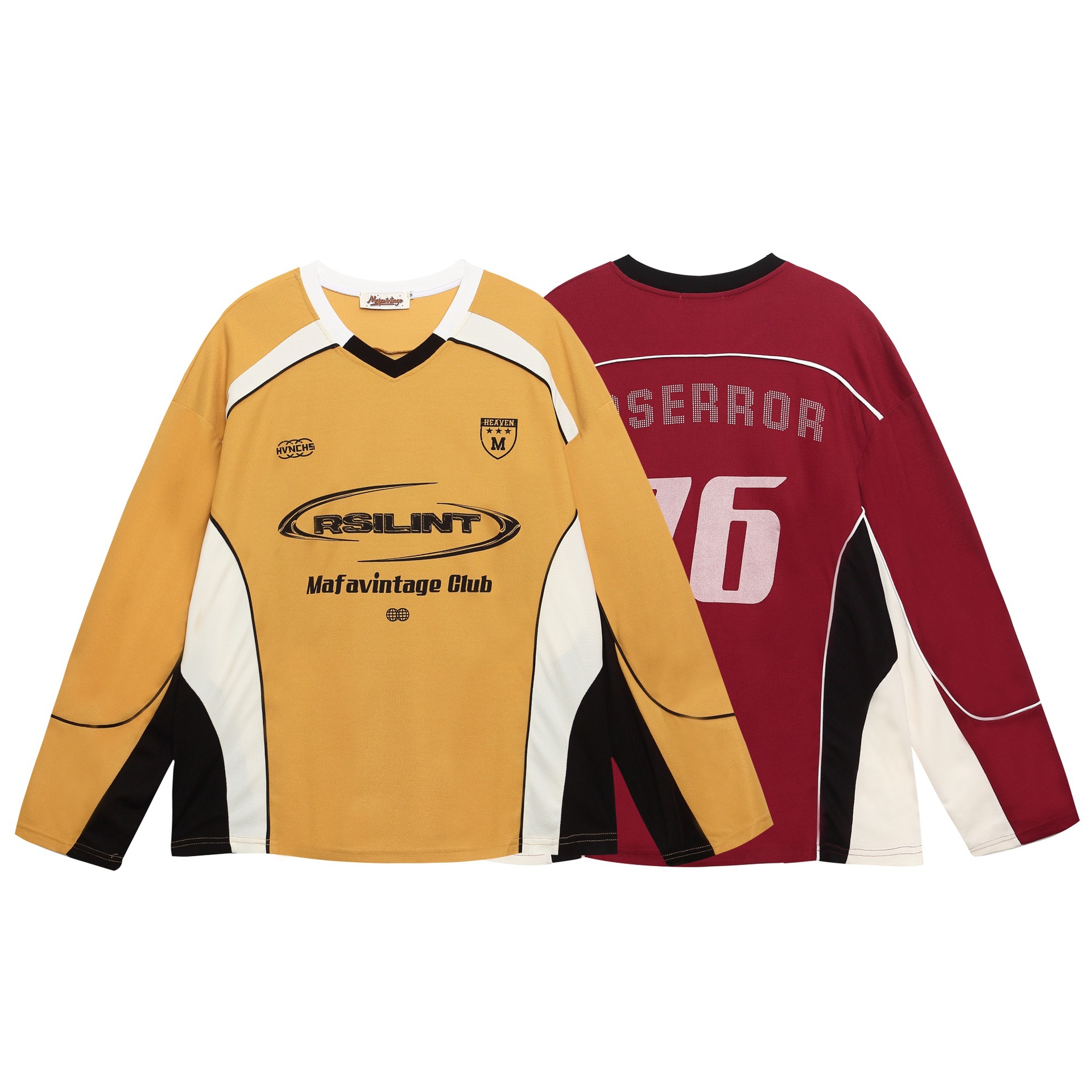 美式复古运动撞色拼接长袖T恤男女秋季街头个性宽松休闲V领球衣潮