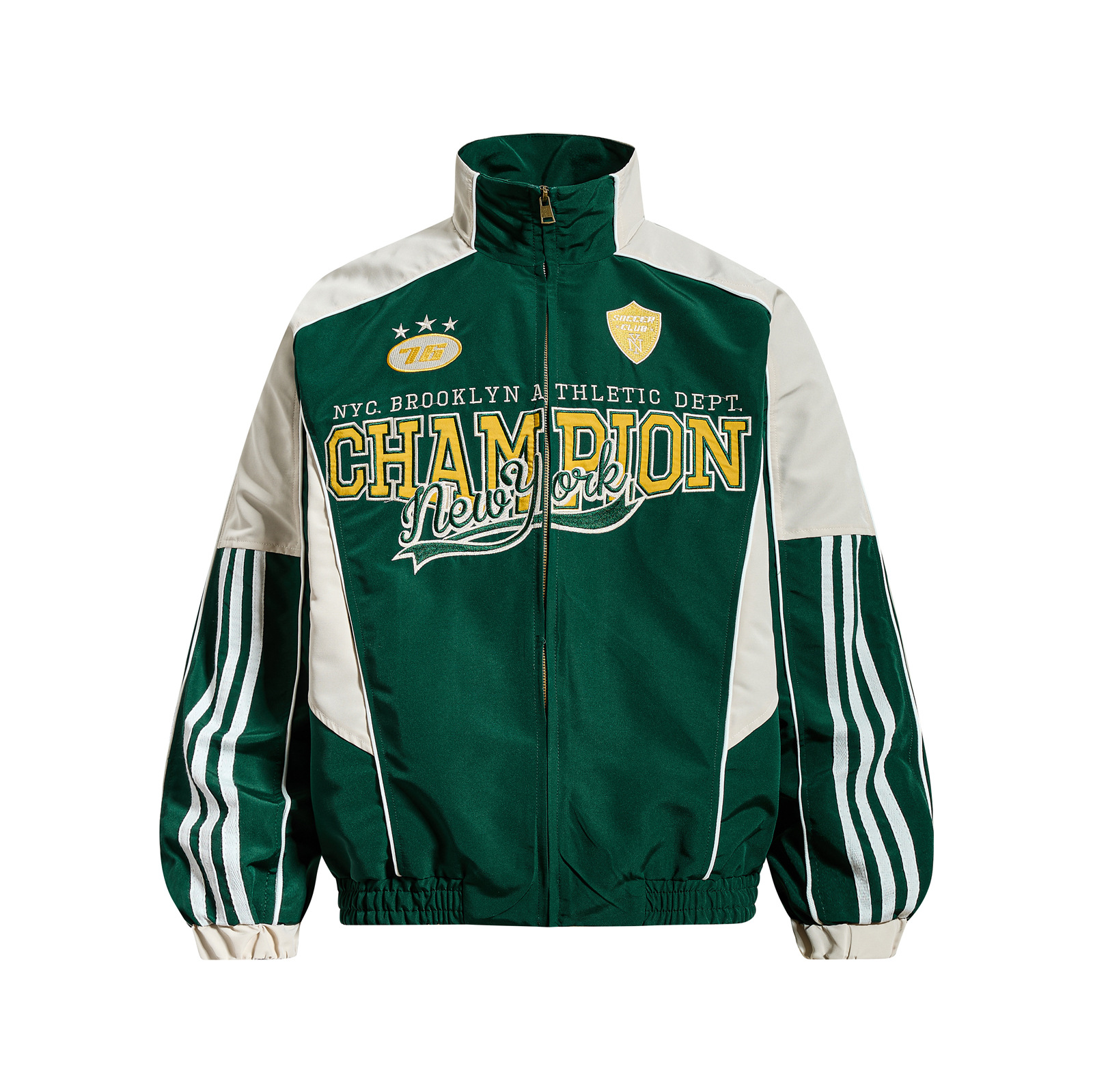 2026新款美式潮牌复古字母印花拼接立领夹克男女休闲潮流情侣外套