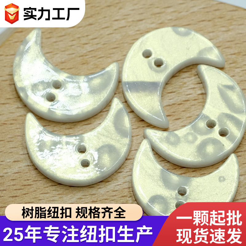 珠光两眼月亮钮扣白色仿贝壳月牙形带孔纽扣服装装饰钮扣厂家直销