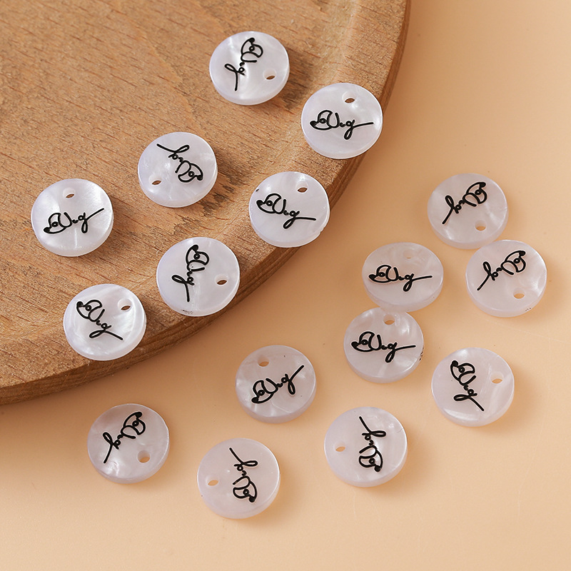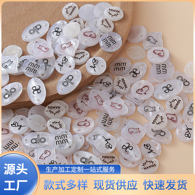 仿贝壳标牌字母印花树脂纽扣异形吊牌扣服装辅料单双孔衣标装饰扣