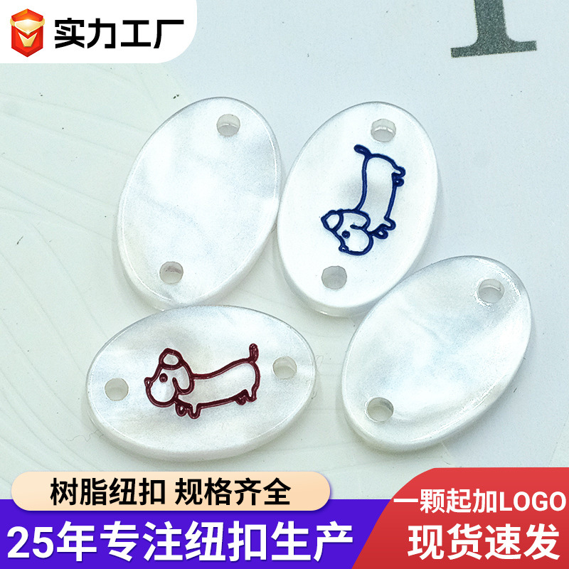 椭圆字母印花标牌扣服装两眼装饰纽扣厂家直销时尚树脂商标纽扣