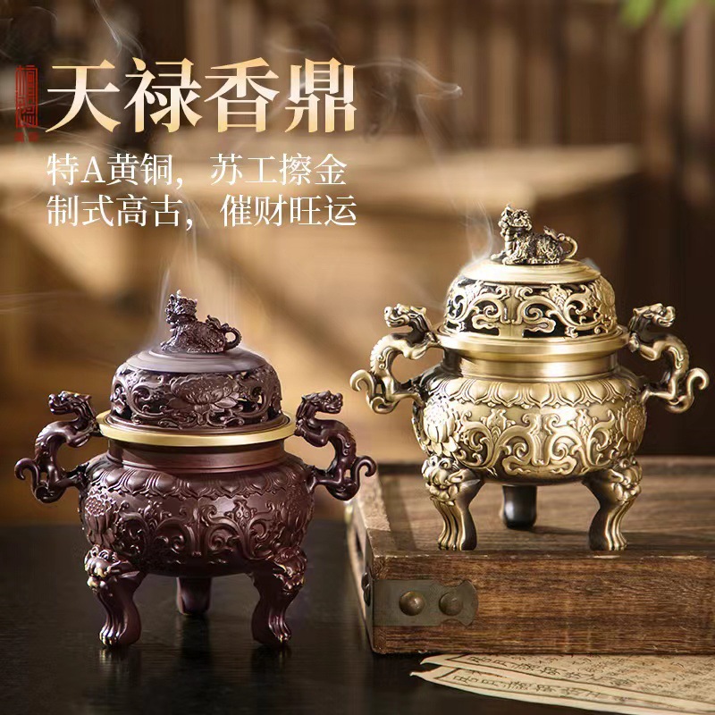 亜鉛合金キリン双龍三脚炉アロマセラピー炉家庭用沈香白檀香コイル模造銅香炉クリエイティブ装飾品
