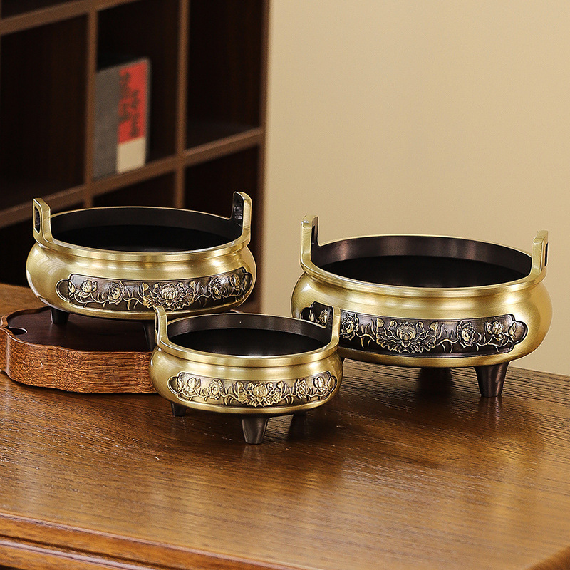 大サイズの銅の香炉は三足の双耳宣徳炉の家庭用供仏を供えます。
