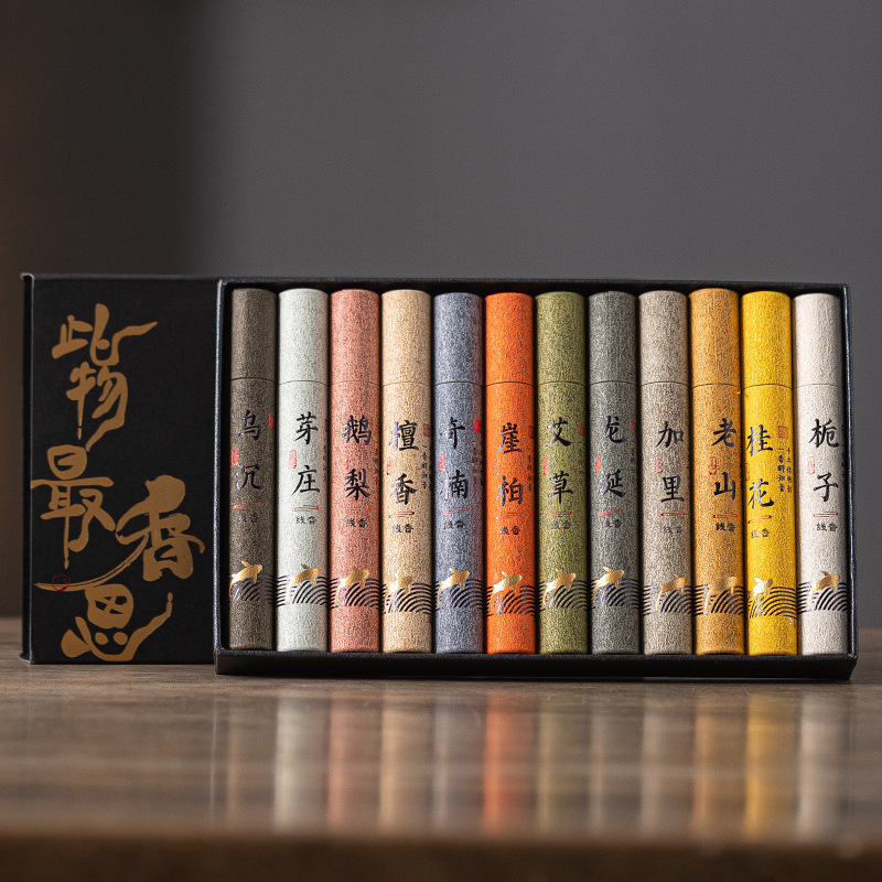 12種類の線香テイスティングパック体験ギフトボックス線香白檀ヤットゥアンガチョウ家庭用屋内アロマセラピー短線香