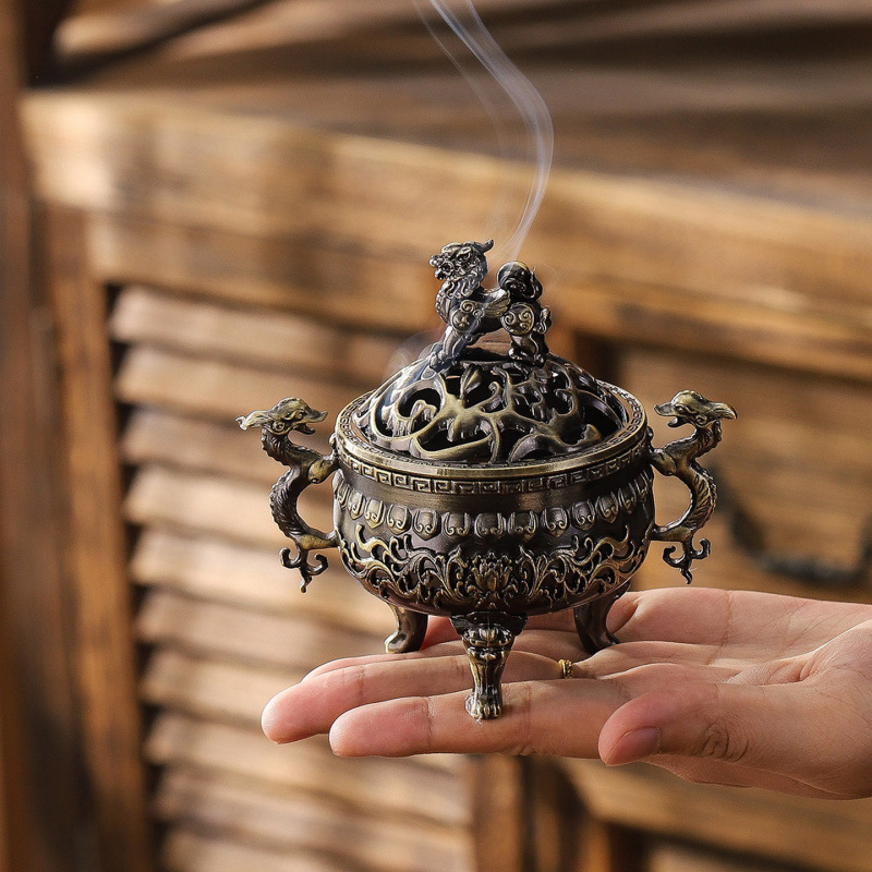 アンティークライオンとドラゴンのおもちゃ香炉獣耳三脚香炉ホームオフィス白檀真鍮アロマテラピー装飾品
