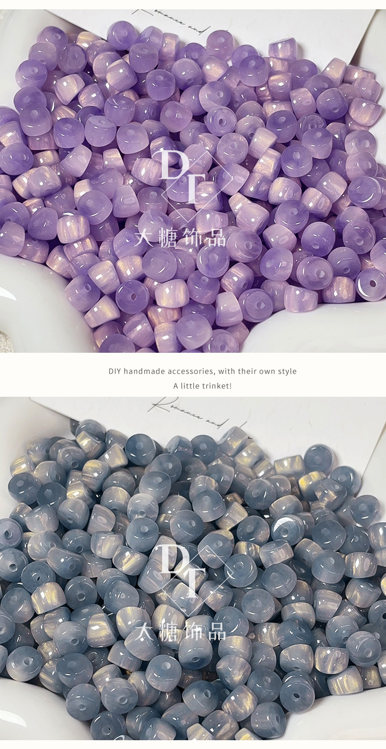 樹脂製猫目金箔斜めカット高級菩提星月大腸飾りスペーサービーズ、手芸用ビーズ、ブレスレット用ビーズ