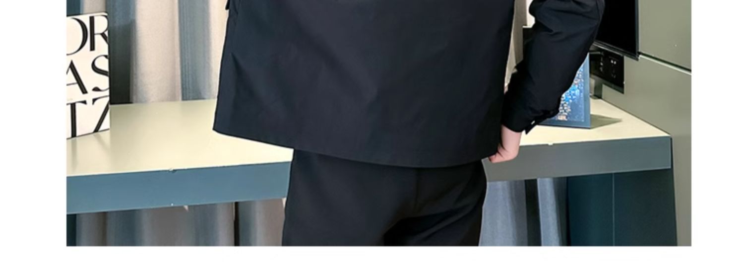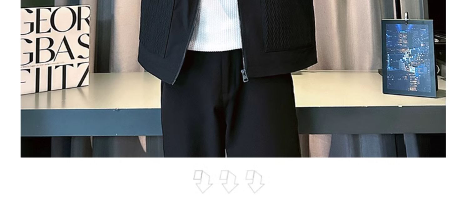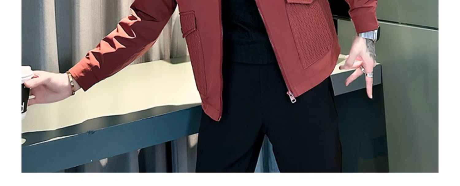 秋の高級ファッションのスタンドカラーのジャケットの男性はシンプルでゆったりしています。