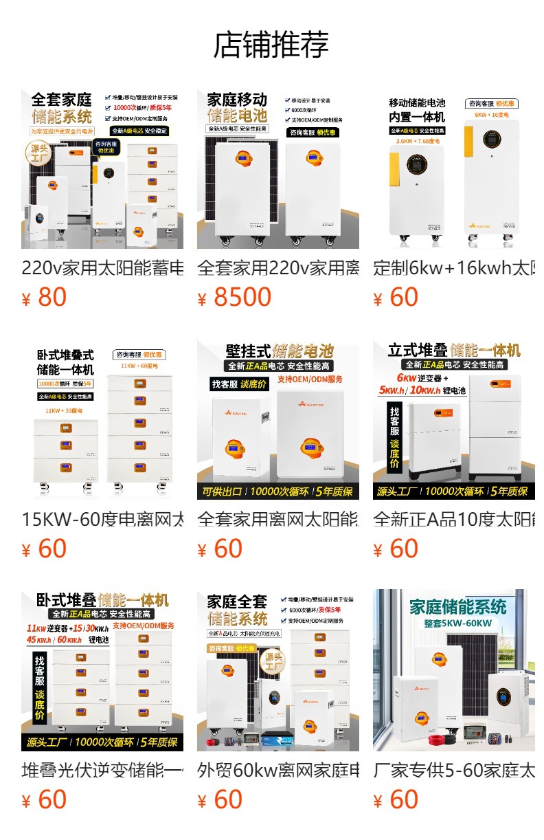 10kw60家庭用太陽光発電蓄電池220v家庭用オフグリッド太陽光発電システムリチウム電池一式