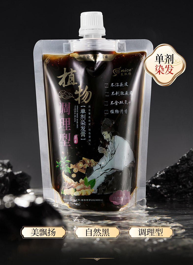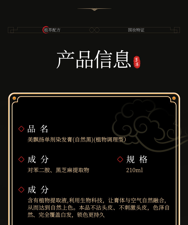 特妆产品名称 美飘扬单剂染发膏(自然黑)(植物调理型)