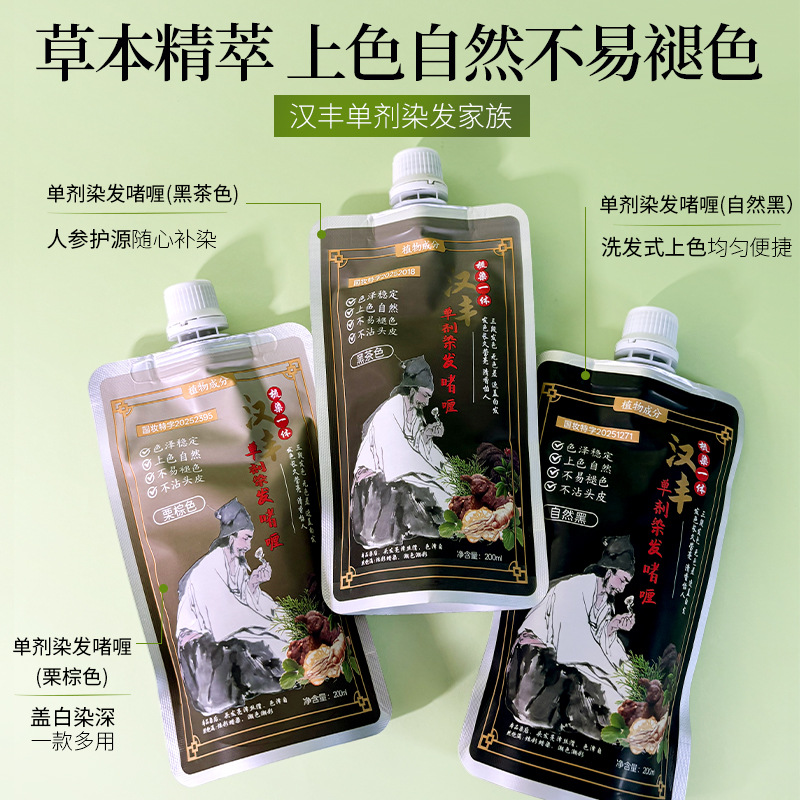 汉丰草本熬制单剂染发膏温和上色花香染包装安全染发剂厂家直销